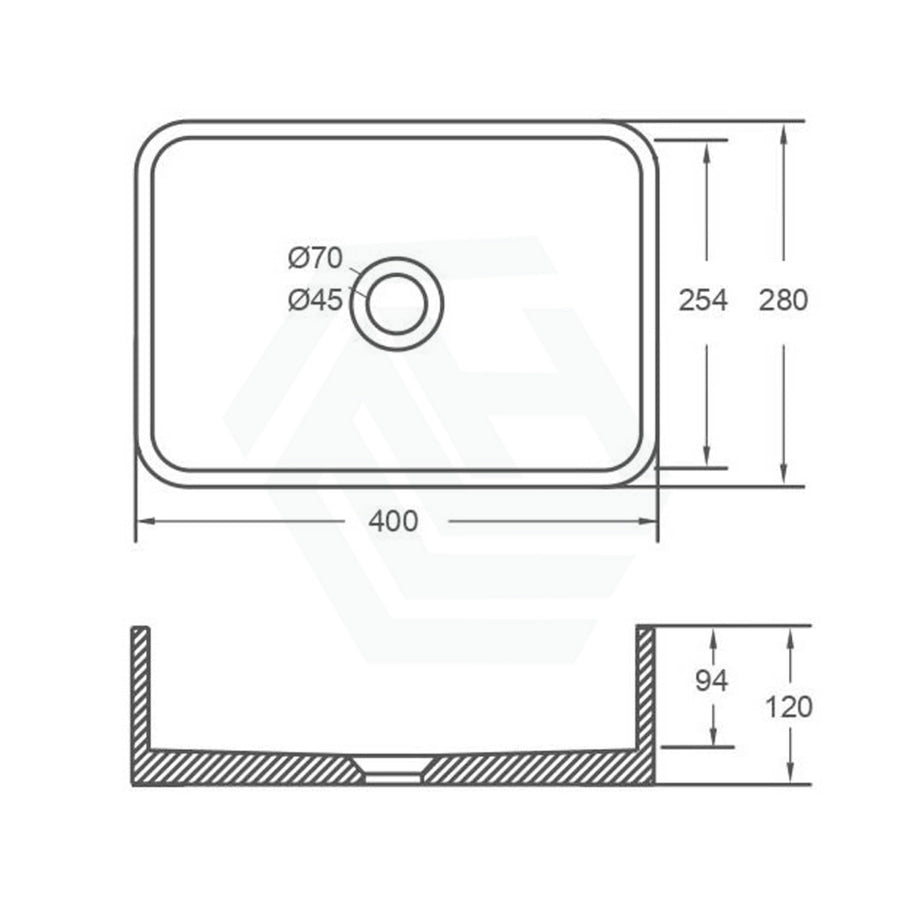 400x280x120mm Rectangle Above Counter Concrete Basin Pop Up Waste Included In Various Colour