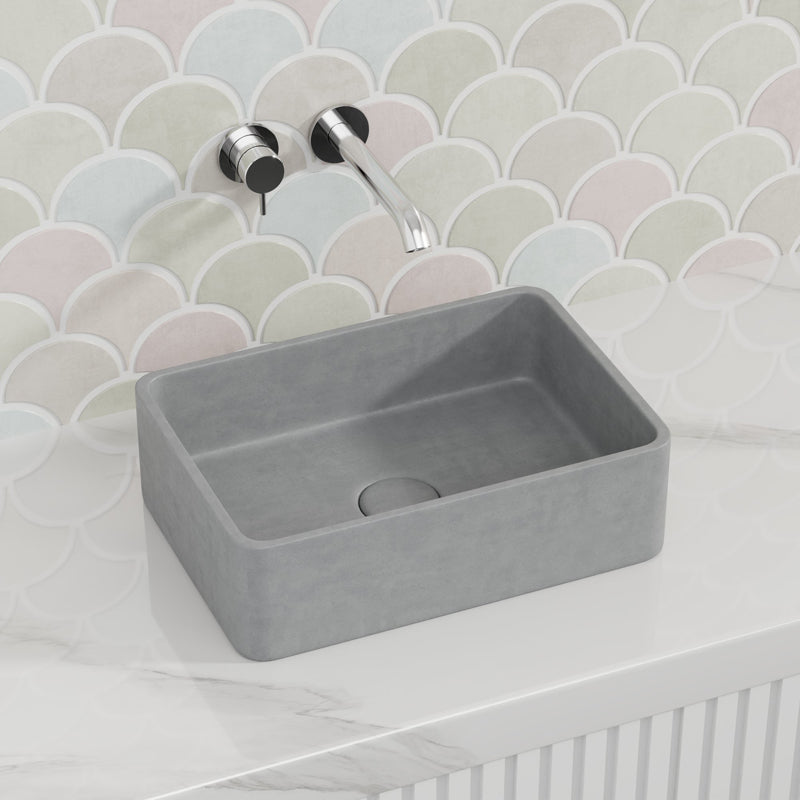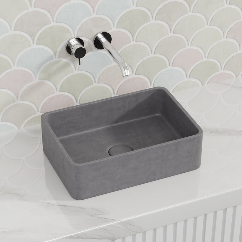 This 400x280x120mm rectangular above-counter concrete basin combines modern design with durability. Its solid concrete construction ensures long-lasting use, while the included pop-up waste offers practical water drainage. Available in various colors, it complements diverse bathroom styles and enhances any countertop with a sleek, contemporary touch. Ideal for those seeking a robust basin that balances aesthetics and functionality.