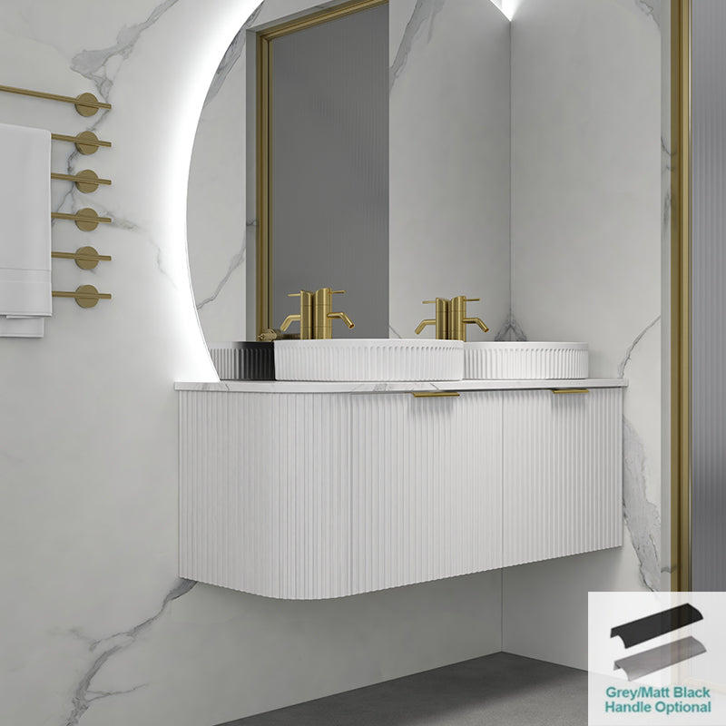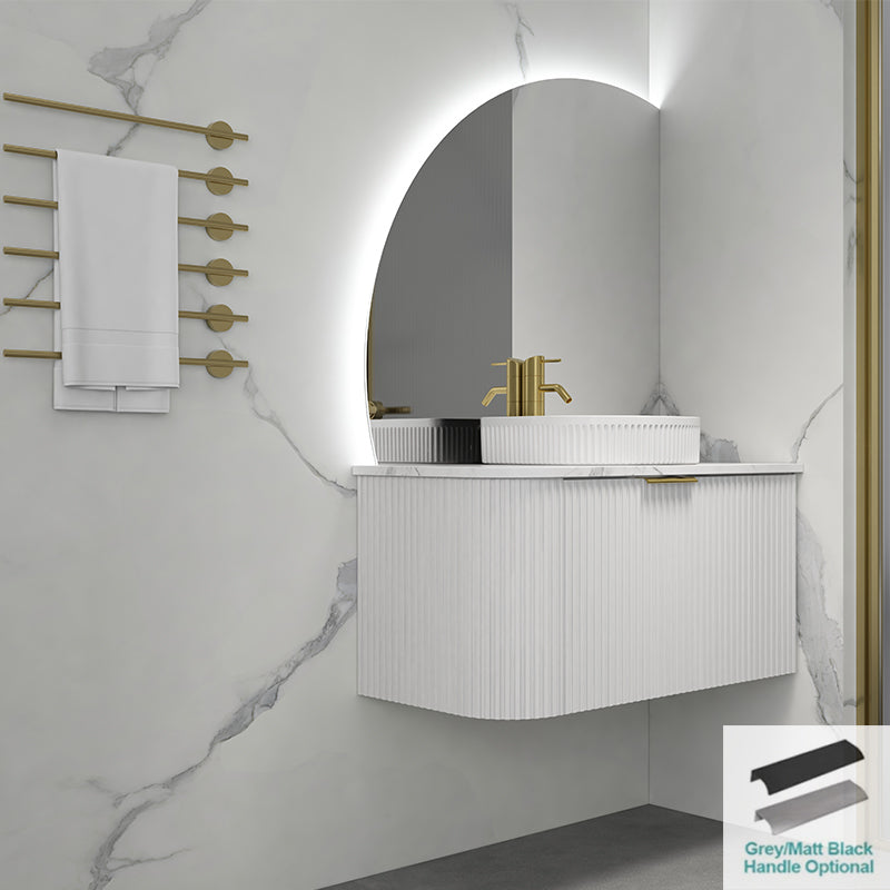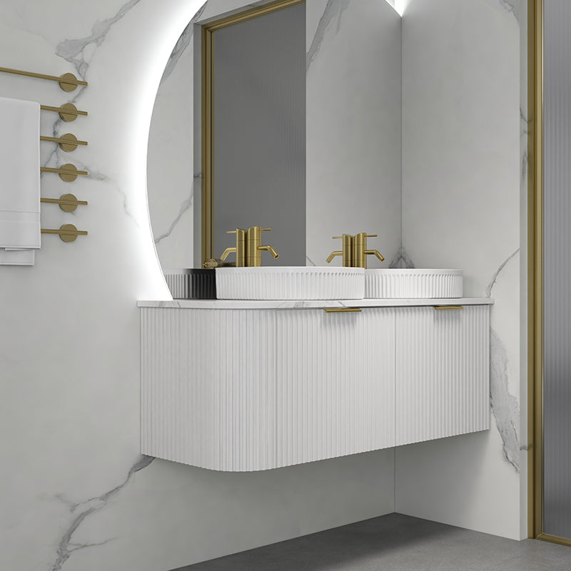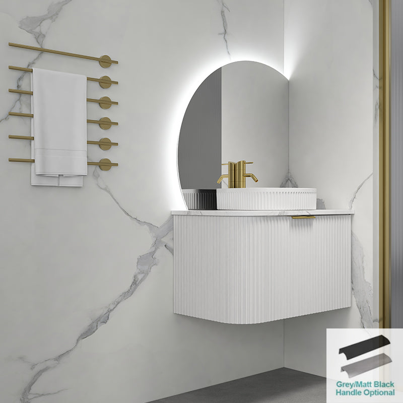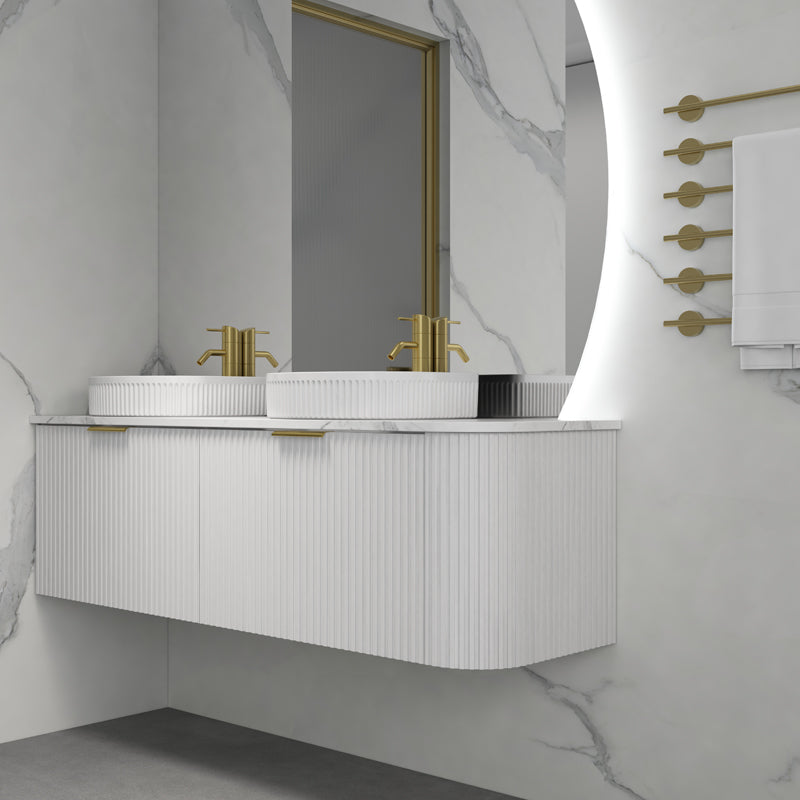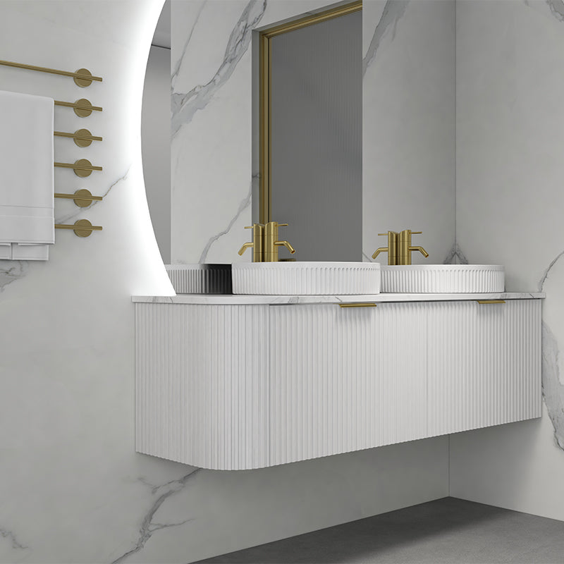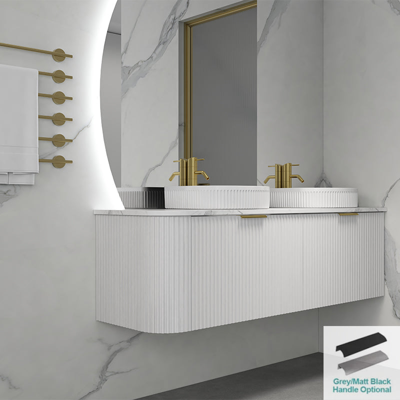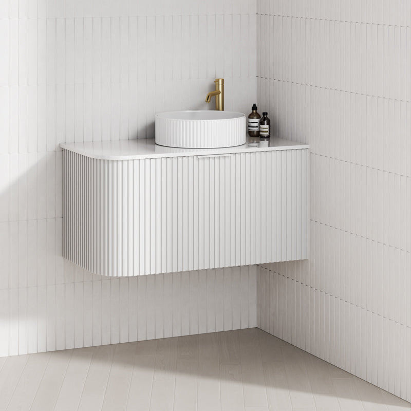 RIO 600/750/900/1200/1500mm Bathroom Linear Surface Corner Vanity Wall Hung Plywood White Cabinet with Stone Top