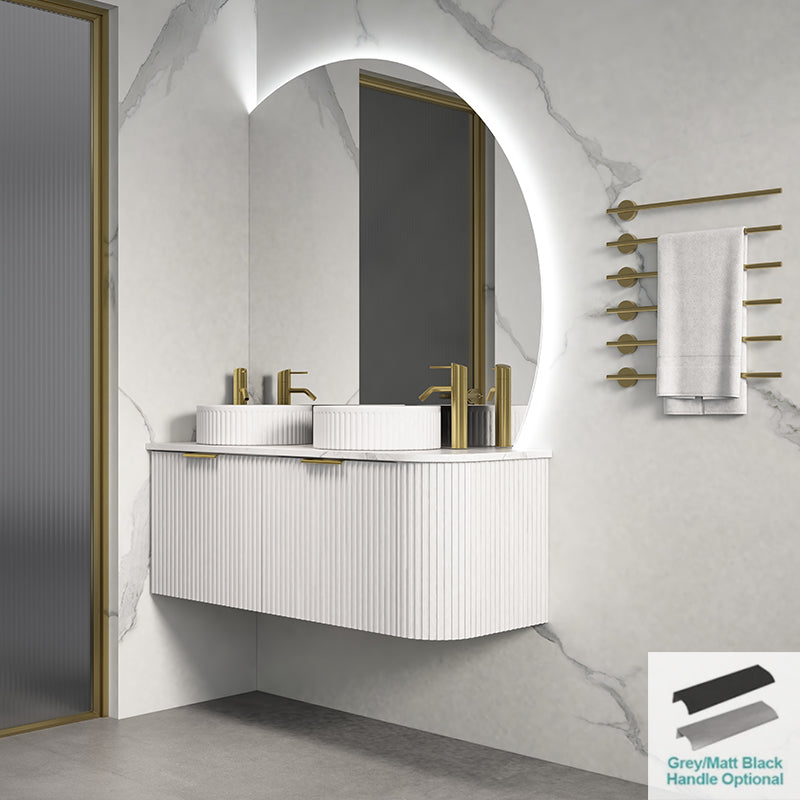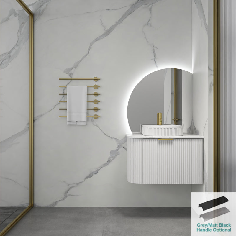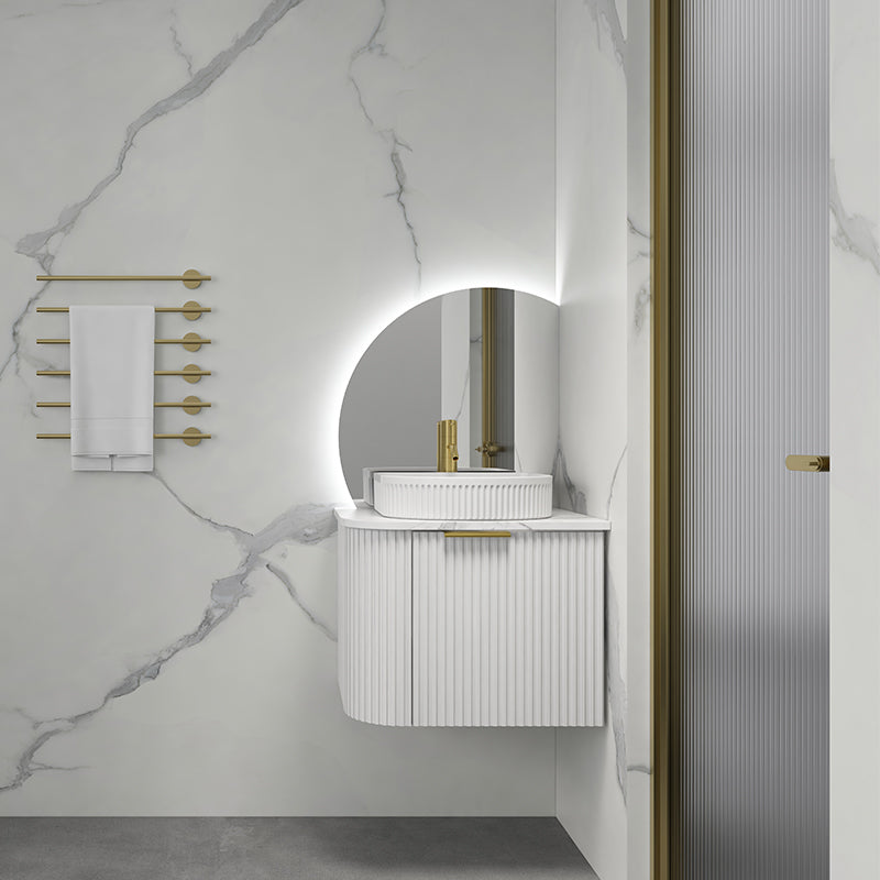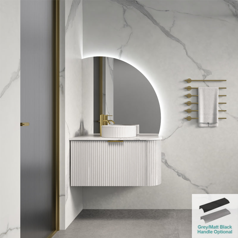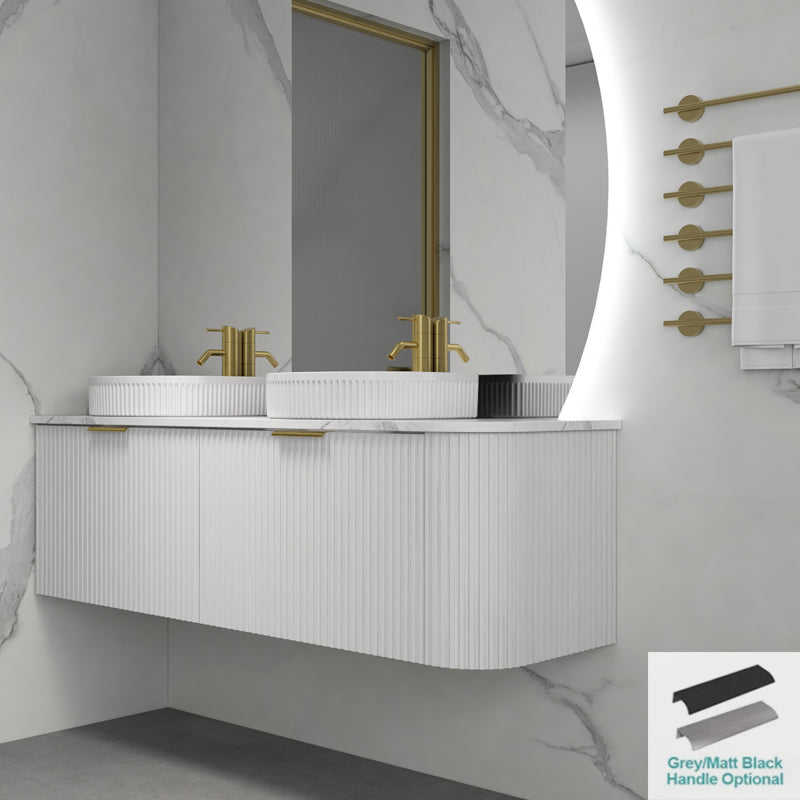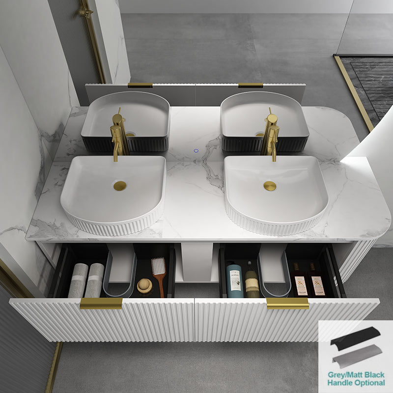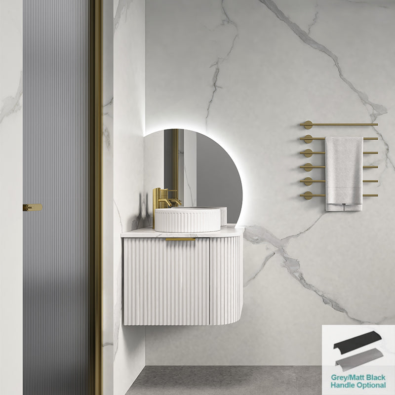 RIO 600/750/900/1200/1500mm Bathroom Linear Surface Corner Vanity Wall Hung Plywood White Cabinet with Stone Top