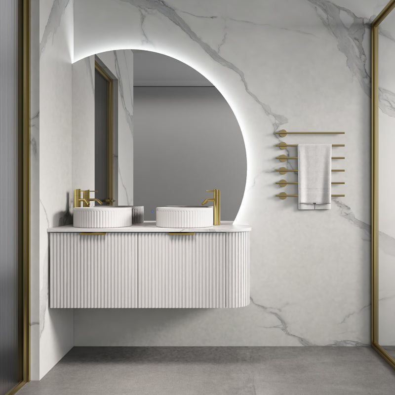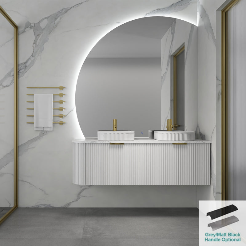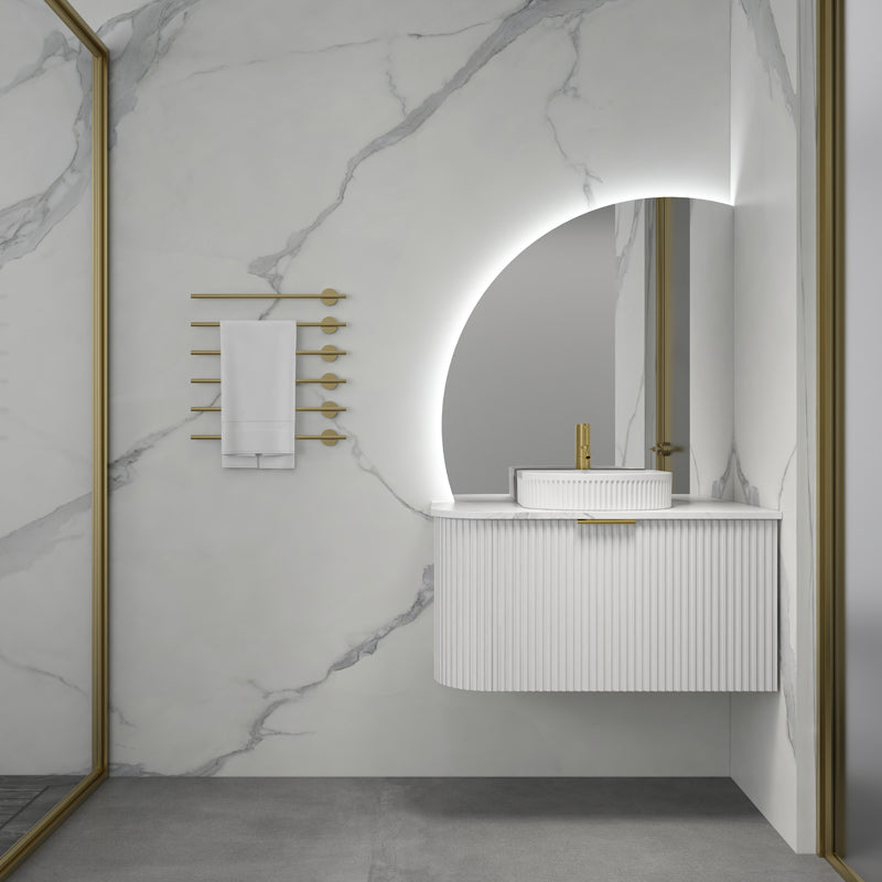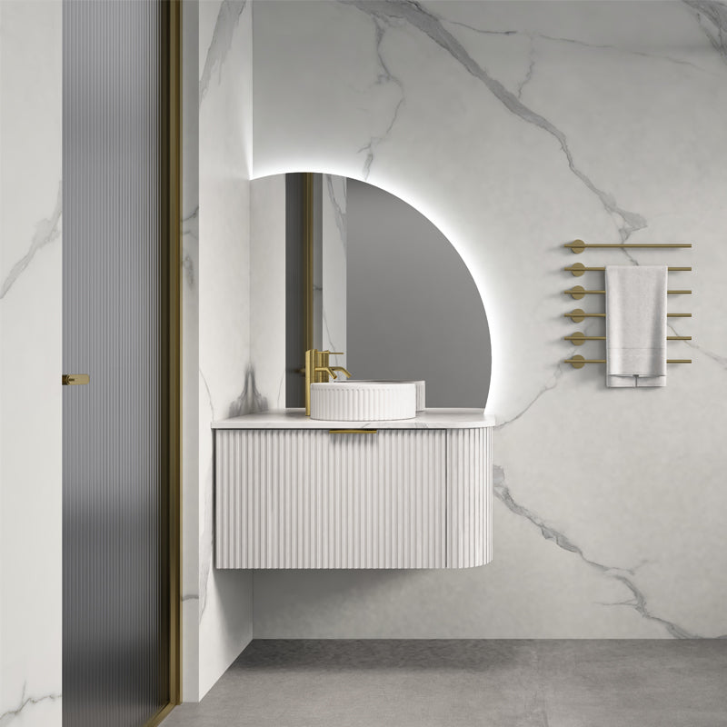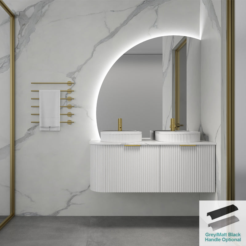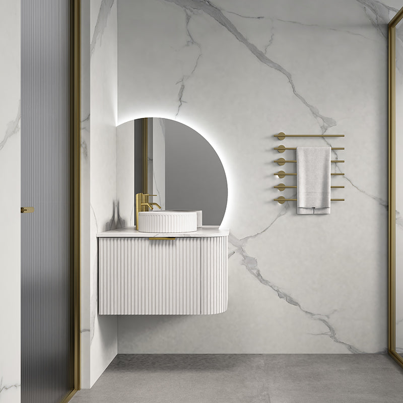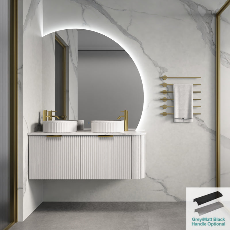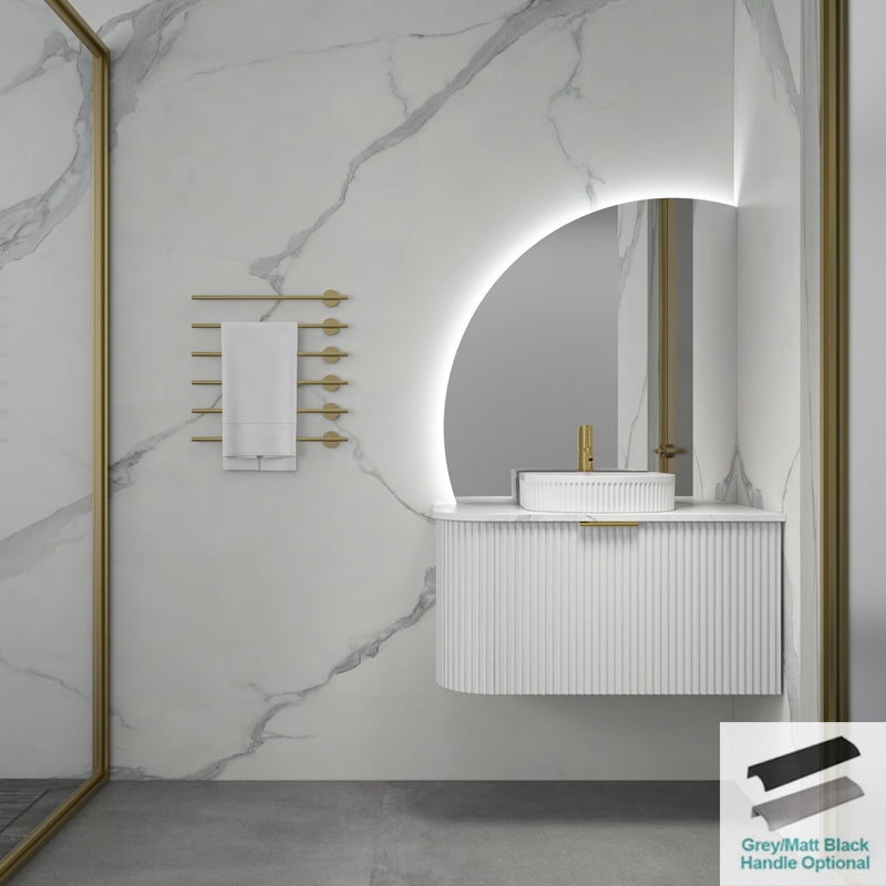 RIO 600/750/900/1200/1500mm Bathroom Linear Surface Corner Vanity Wall Hung Plywood White Cabinet with Stone Top