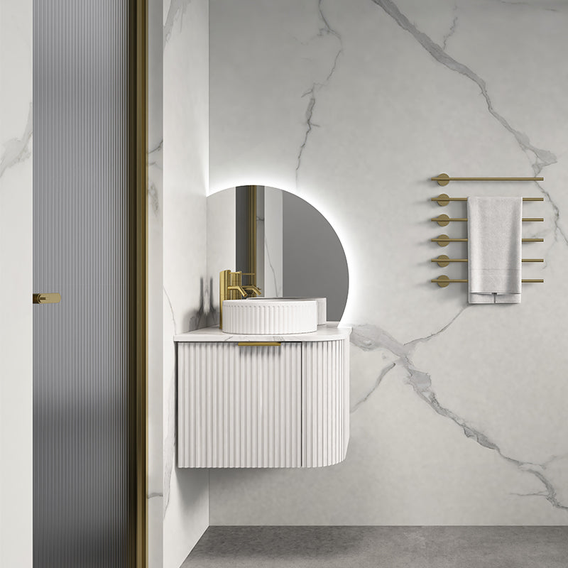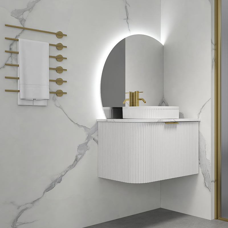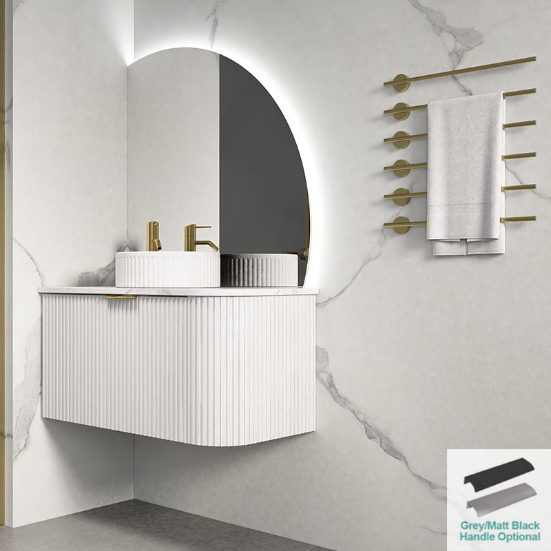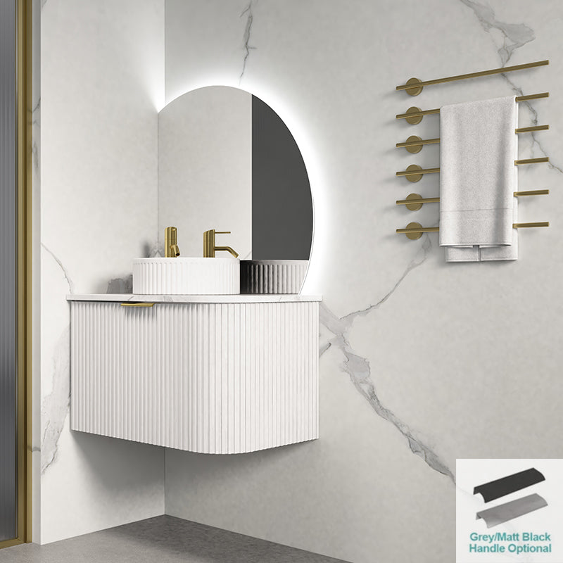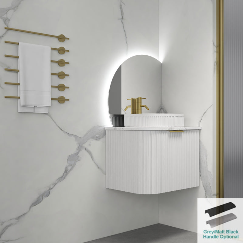 RIO 600/750/900/1200/1500mm Bathroom Linear Surface Corner Vanity Wall Hung Plywood White Cabinet with Stone Top brings comfort and function together in the bathroom.