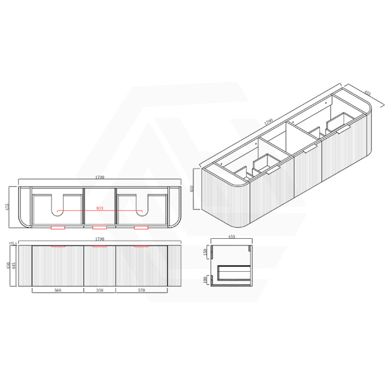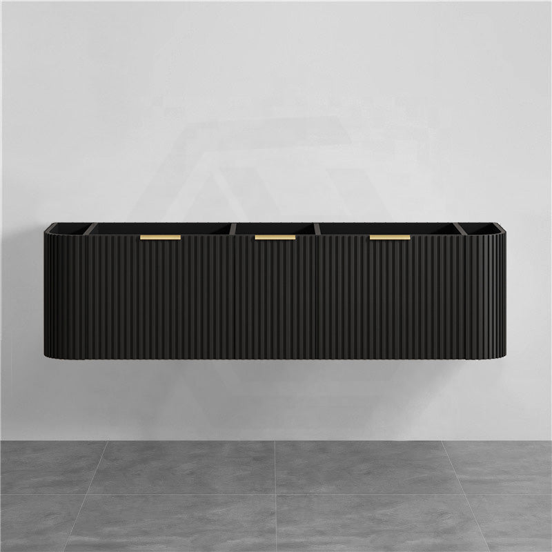 RIO 600-1800mm Bathroom Linear Surface Vanity Wall Hung Single/Double Bowl Plywood Black Cabinet ONLY & Stone Top Available