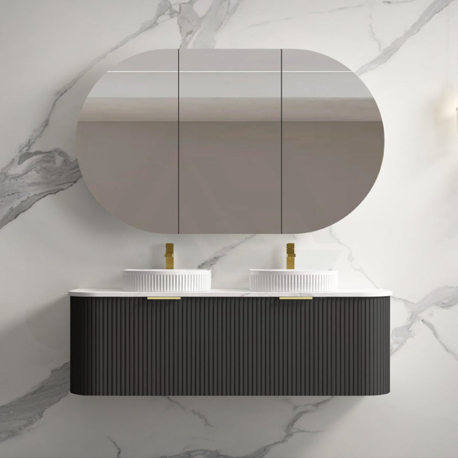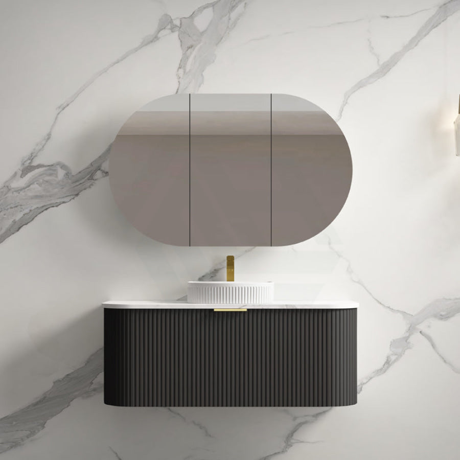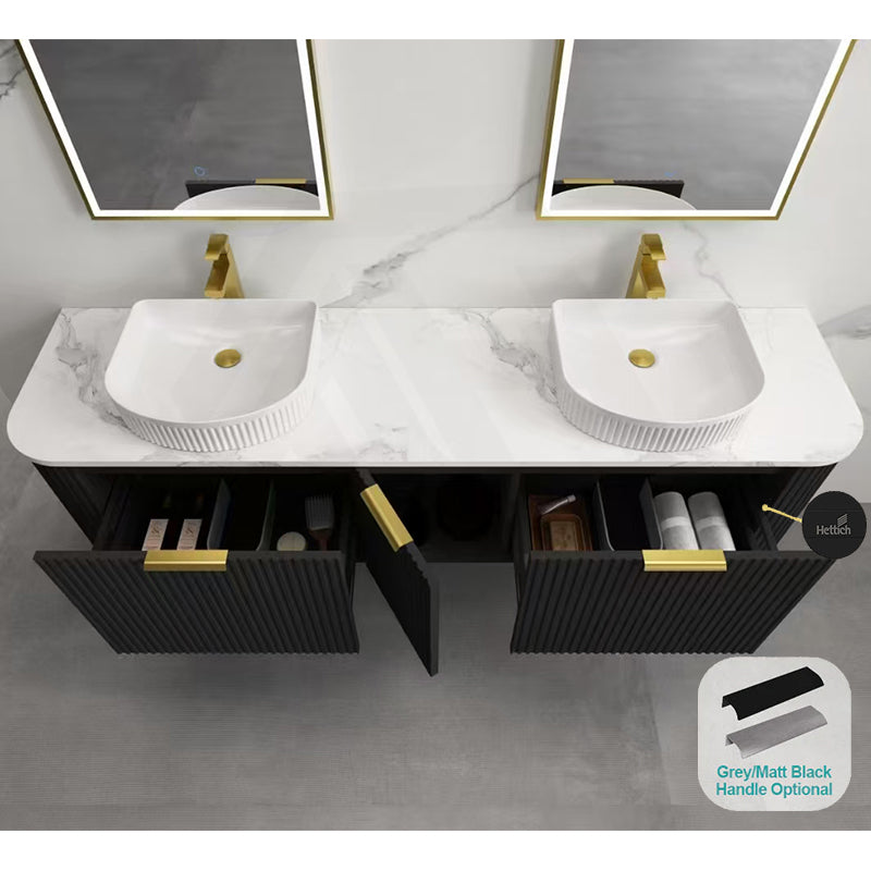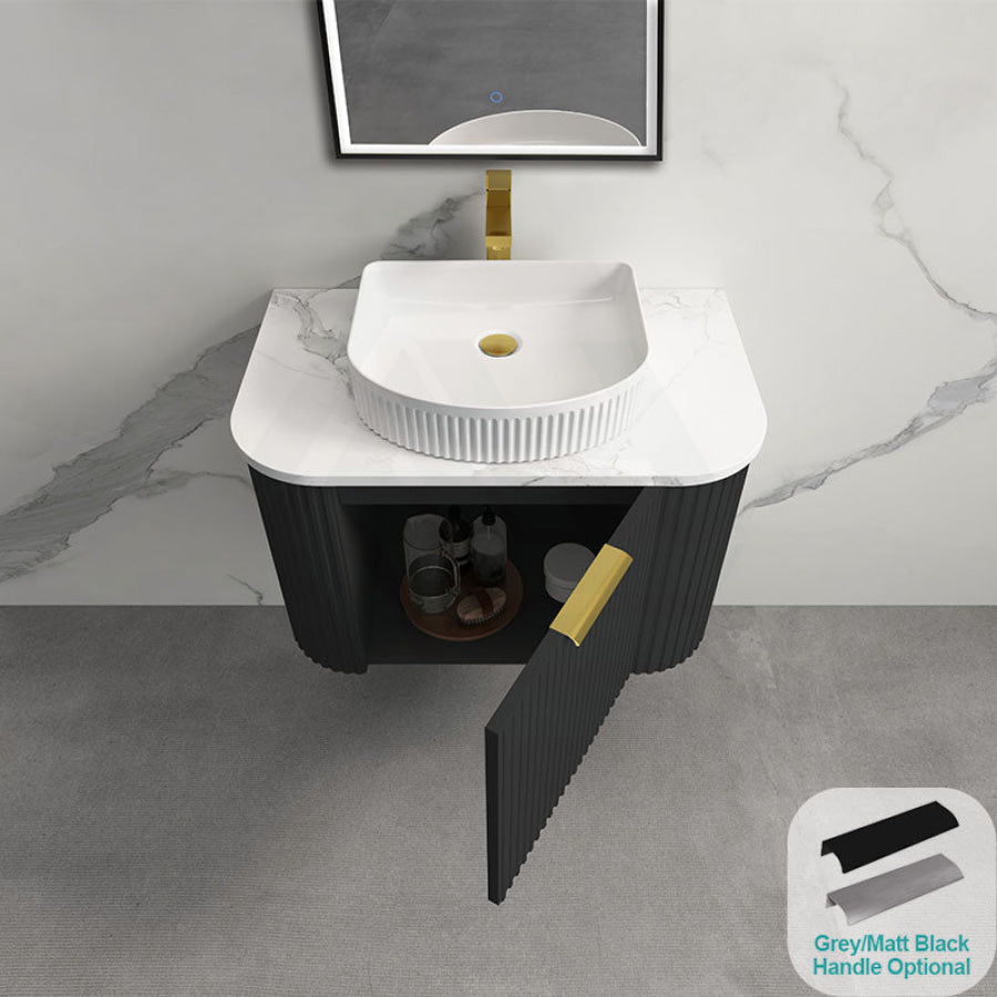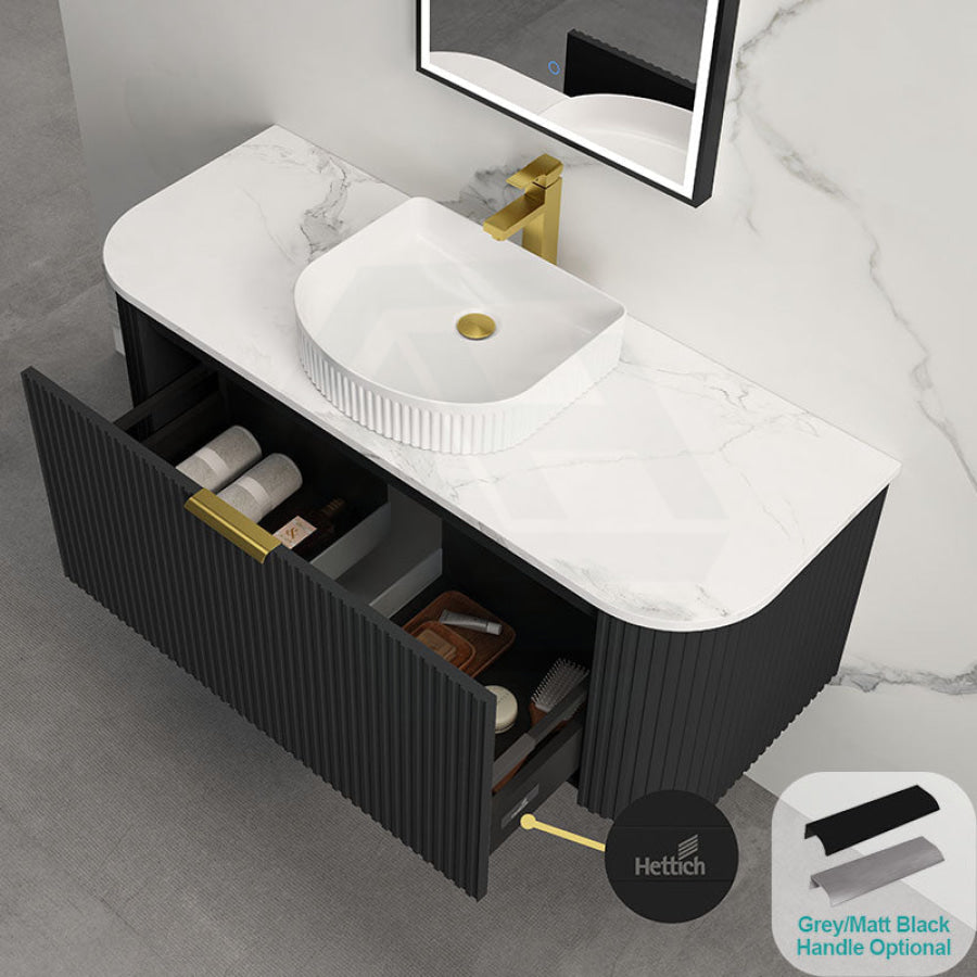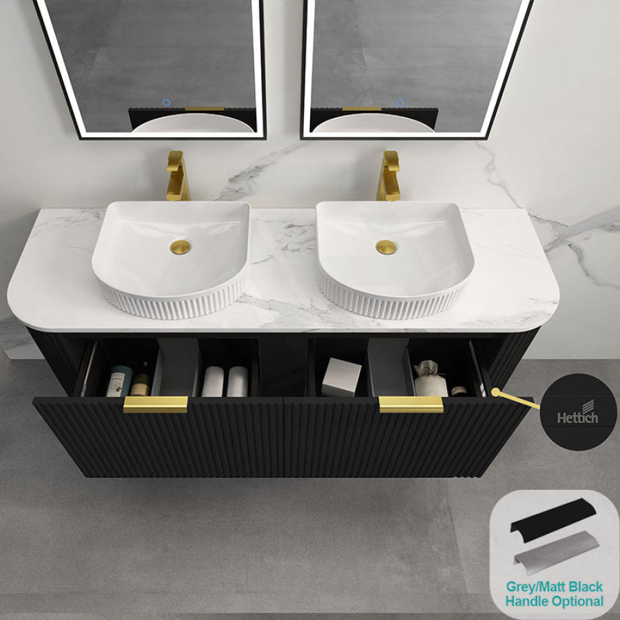 Main Product | Curved Edge Vanity Matt Black with Gold/Matt Black/Grey Handle |