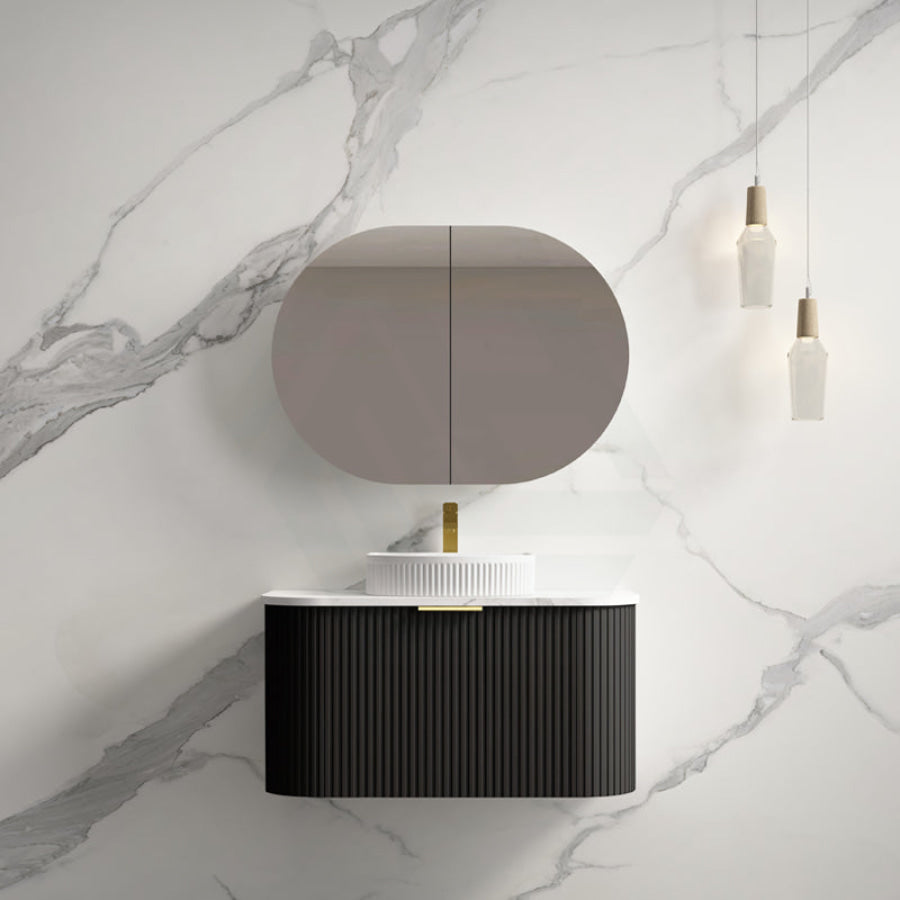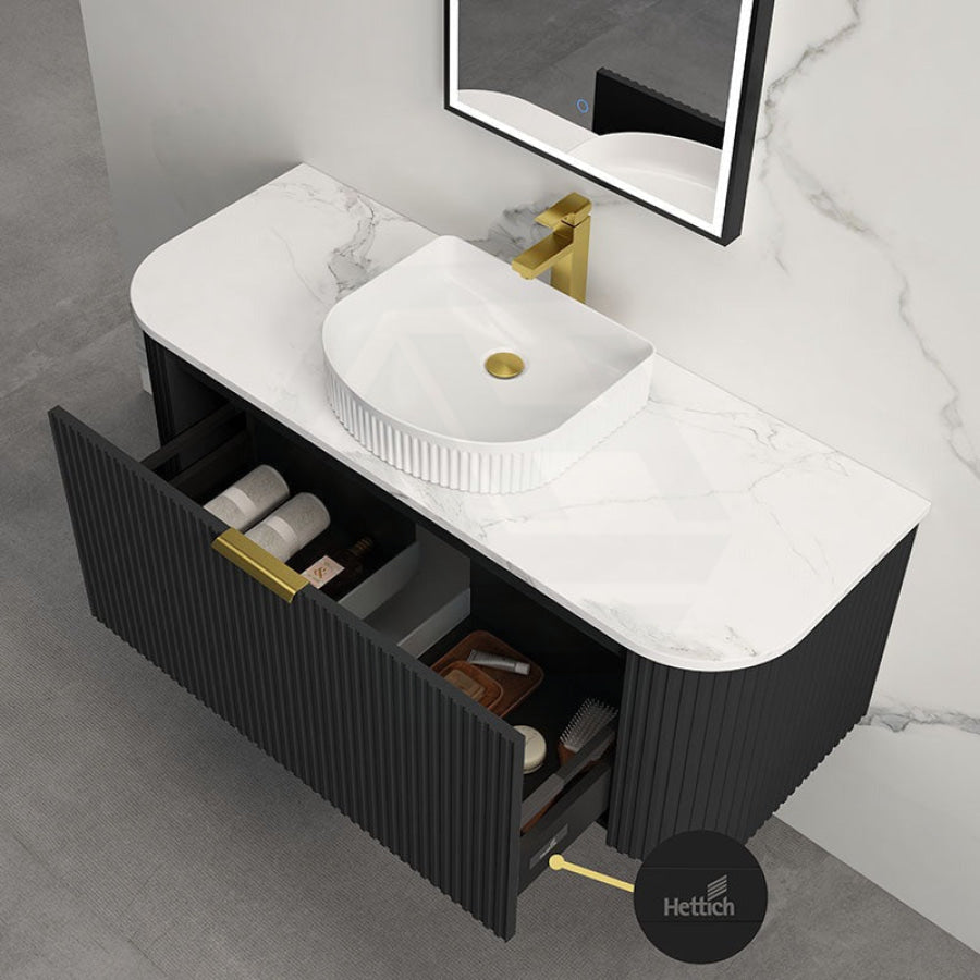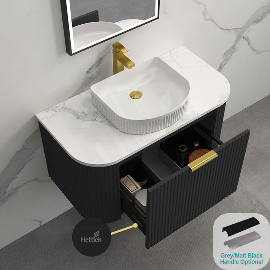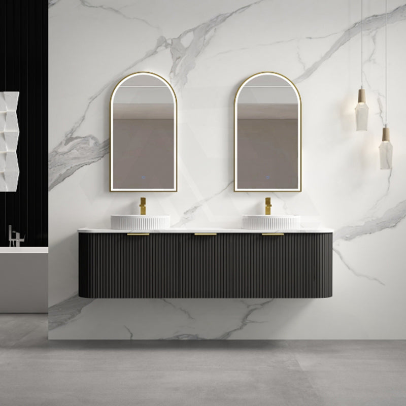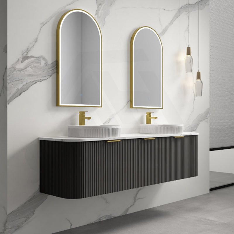 Main Product | Curved Edge Vanity Matt Black with Gold/Matt Black/Grey Handle |