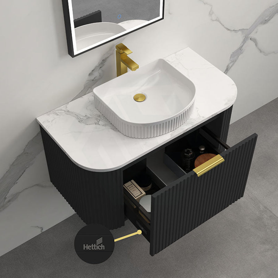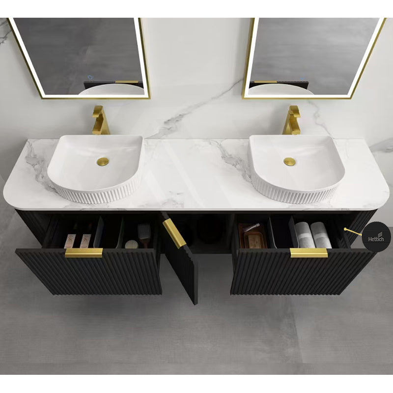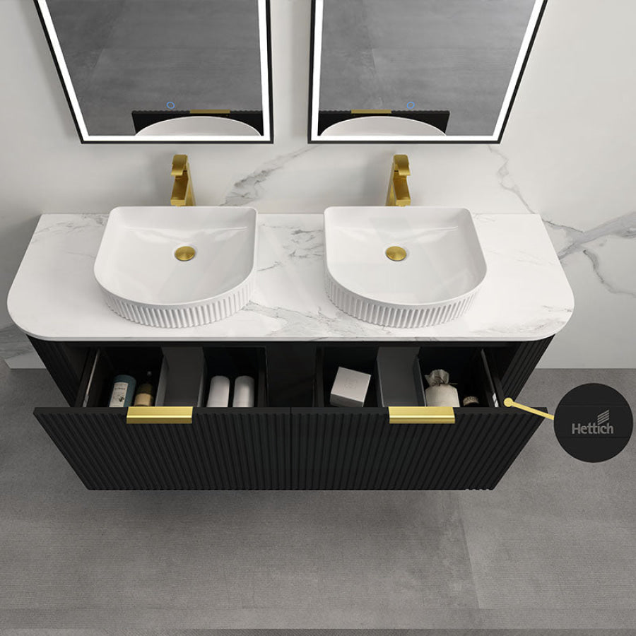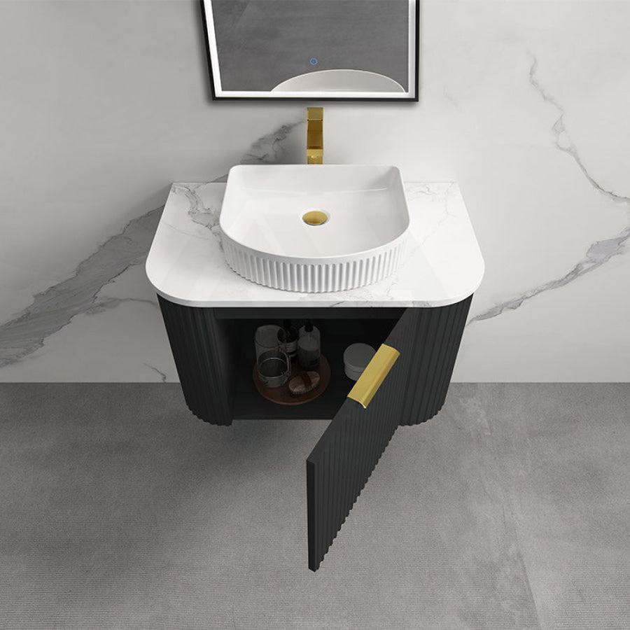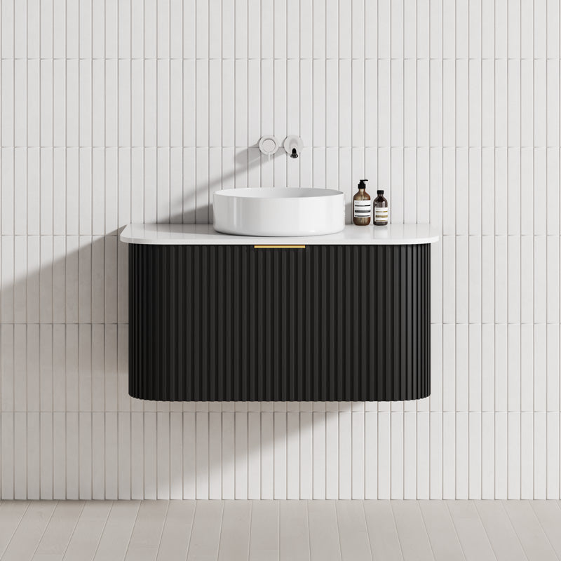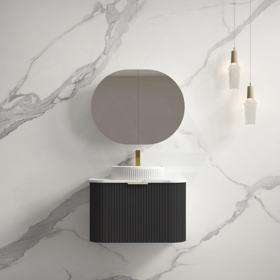 Main Product | Curved Edge Vanity Matt Black with Gold/Matt Black/Grey Handle |