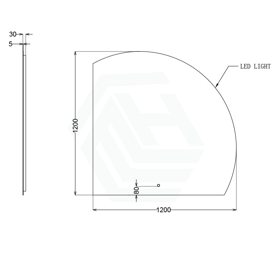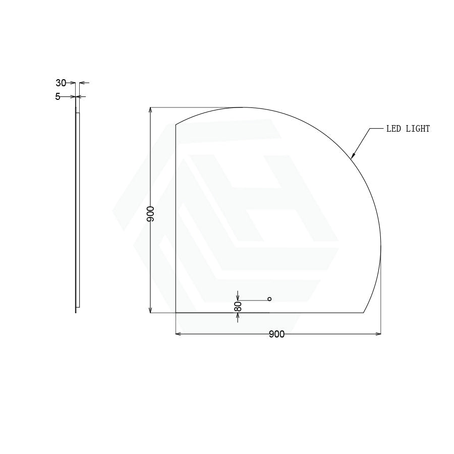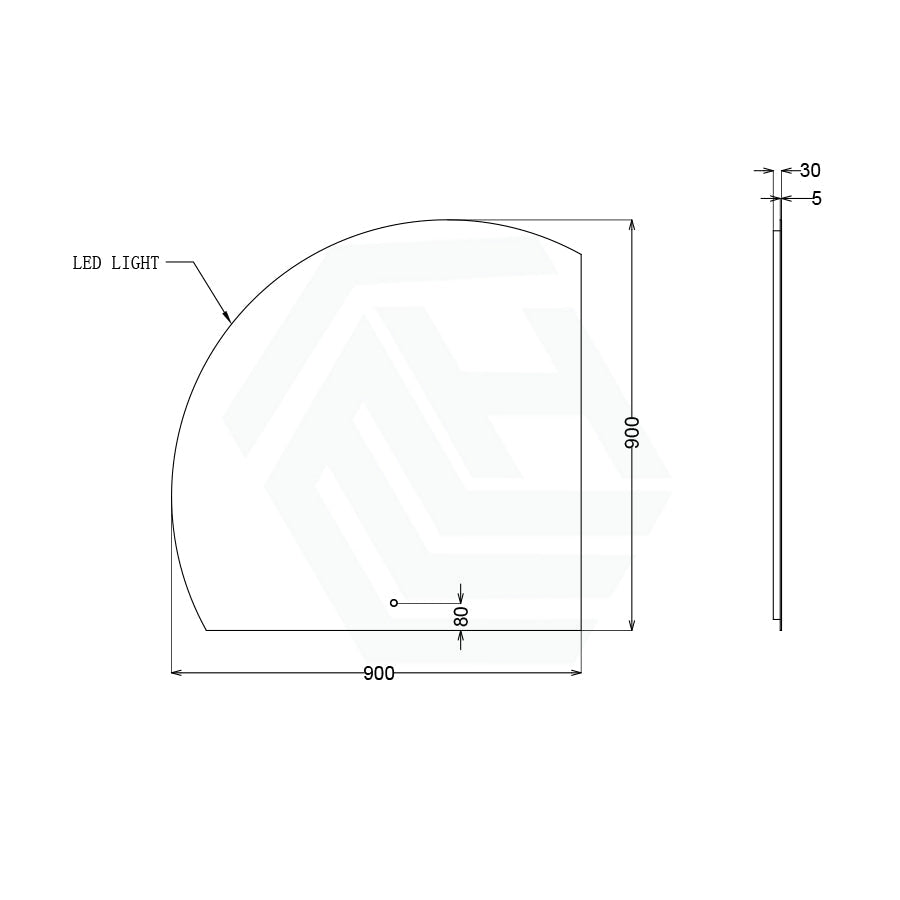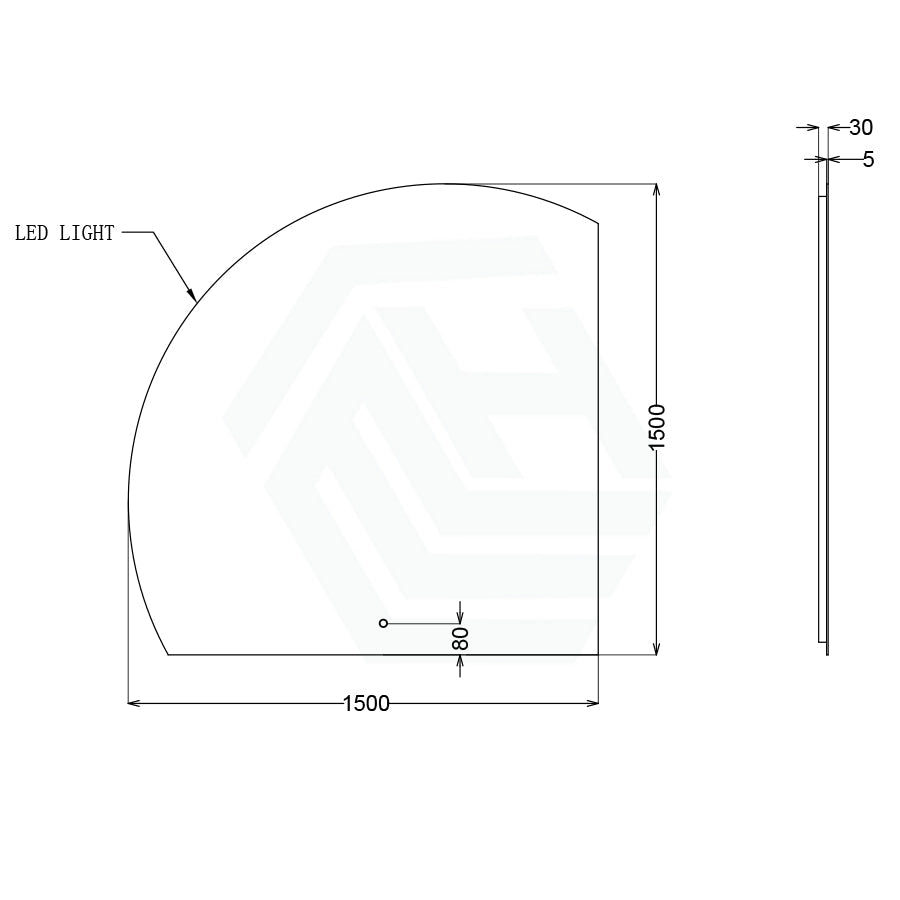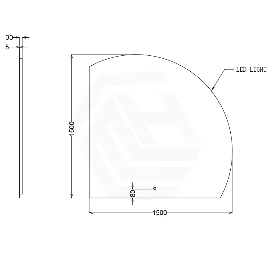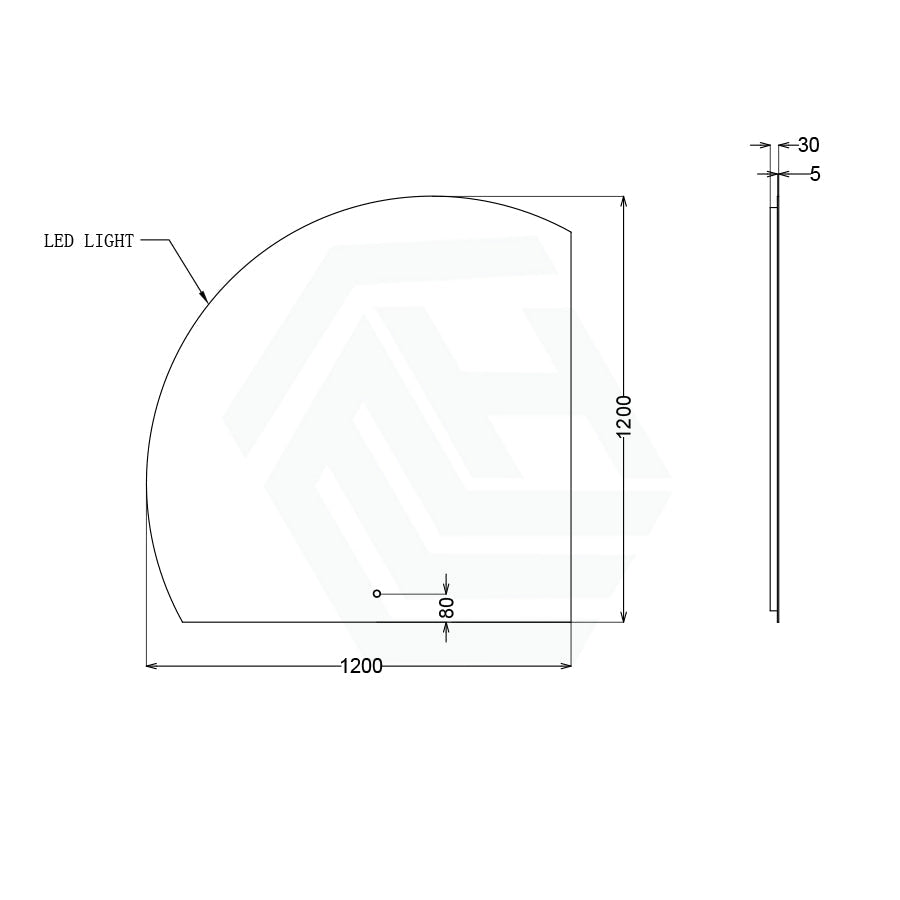 900/1200/1500mm Roman Corner Led Mirror Sensor Touch Frameless Fan Shaped