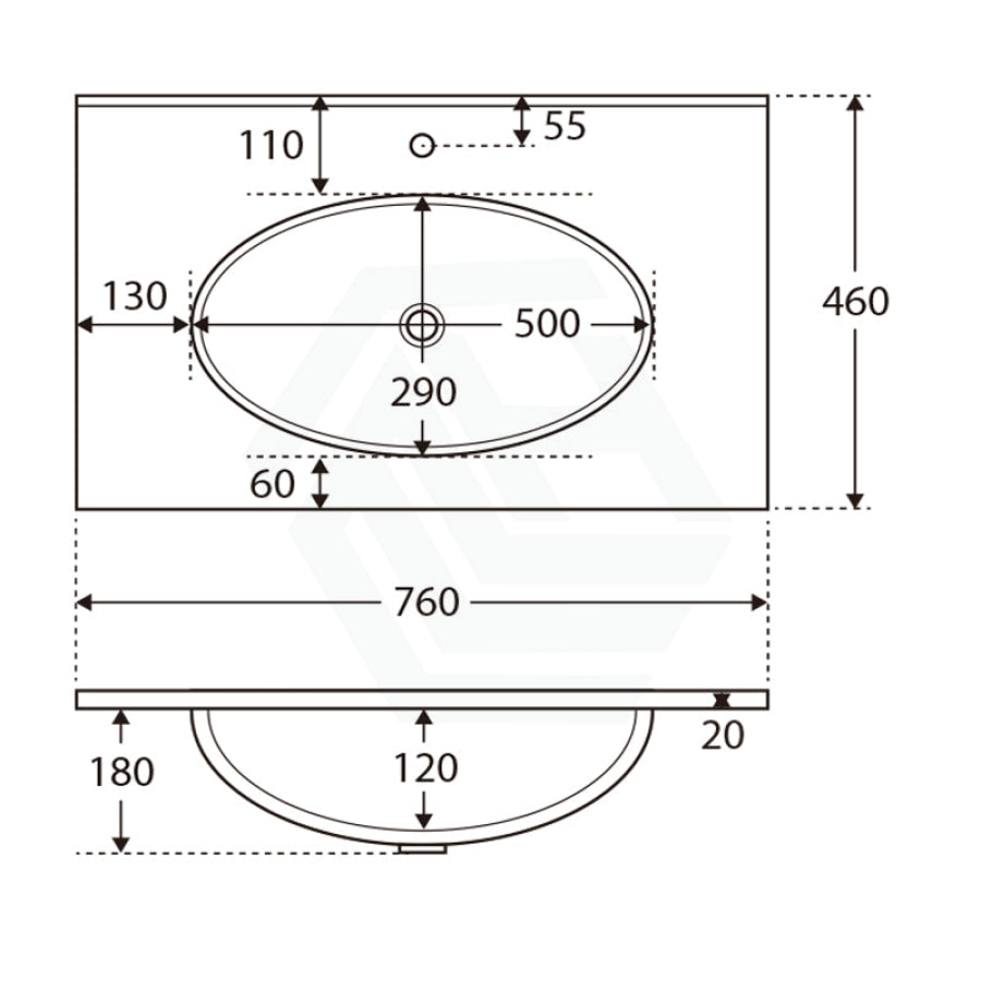 - 20 mm thick vitreous china