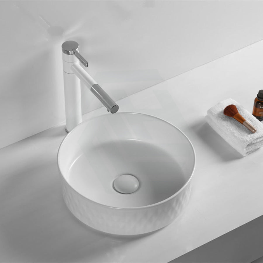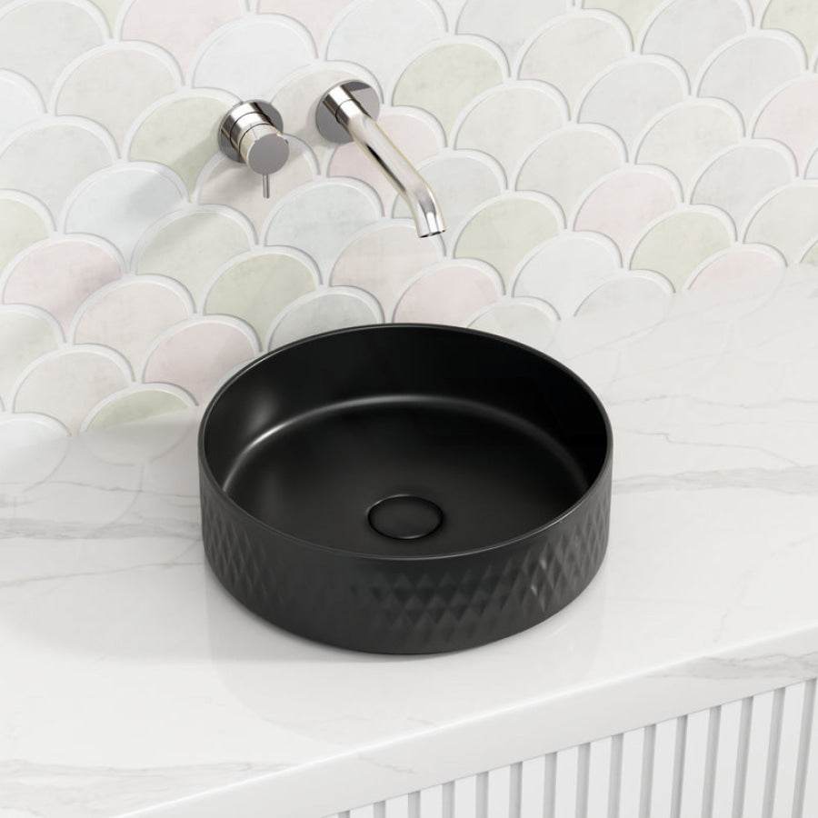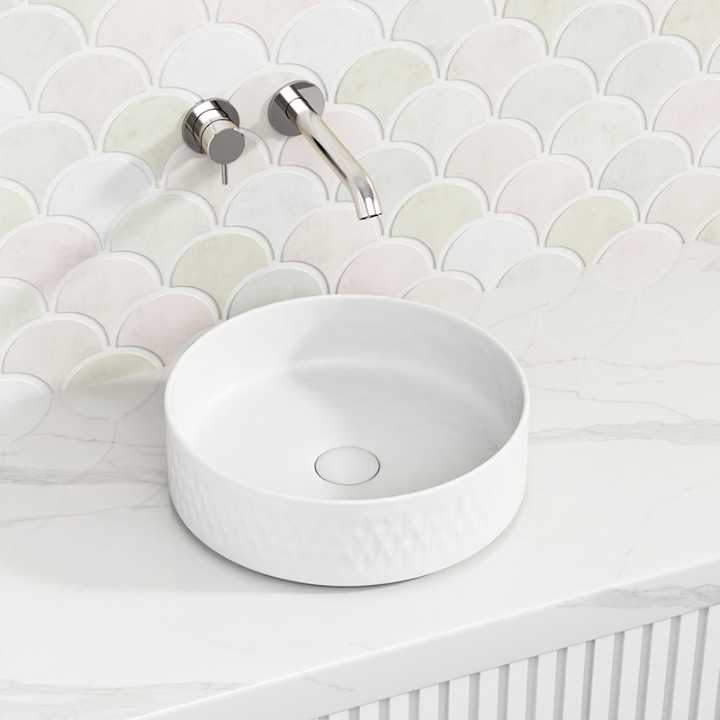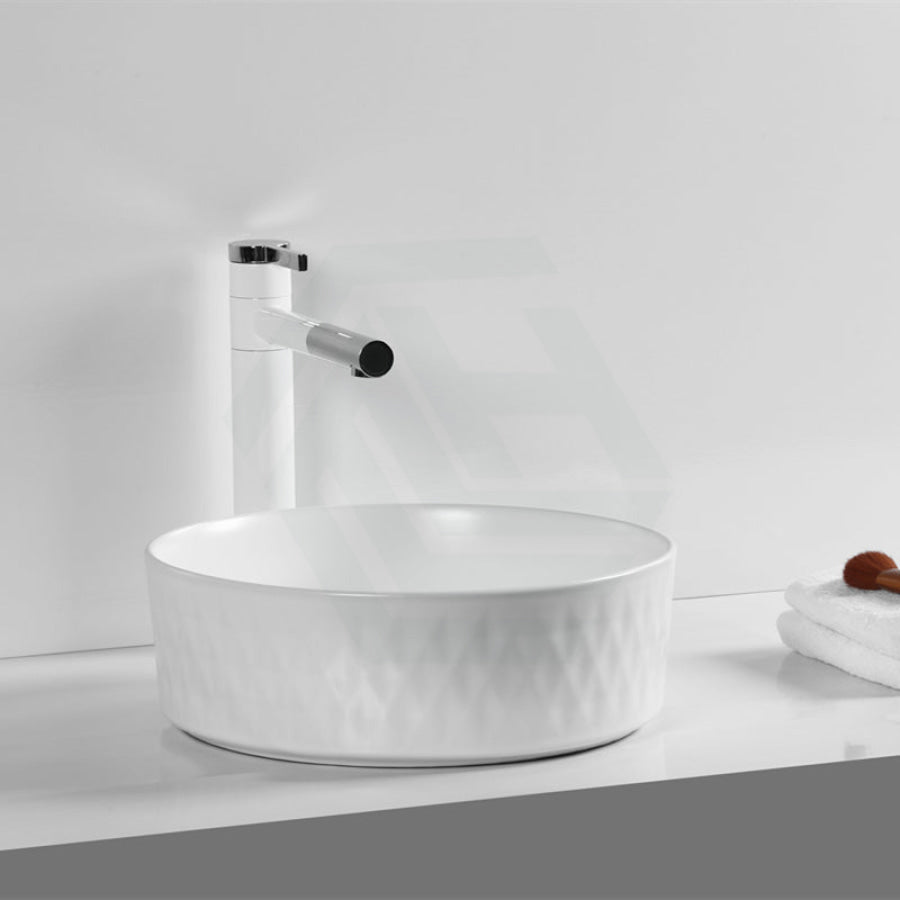 This 360x360x120mm round ceramic wash basin is designed for above-counter installation, combining functionality with style. Its lattice pattern adds a sophisticated texture, available in various colours to complement your bathroom decor. Crafted for durability and ease of cleaning, this basin offers a sleek and modern solution for everyday use. Its compact size is ideal for optimizing space without compromising on design or quality.