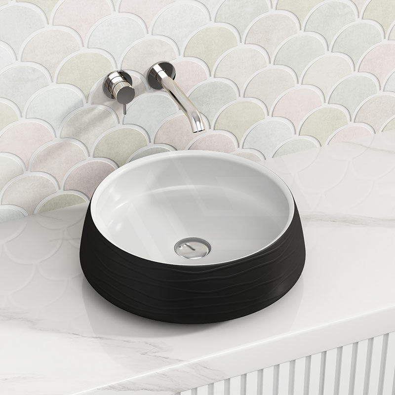 410x410x140mm Round Matt Black & White Above Counter Basin Counter Top