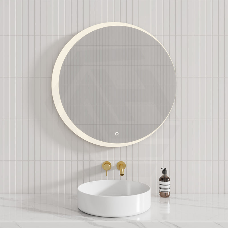 600/800mm Round LED Mirror Crescent Rim Touch Sensor Switch 3 Colours Lighting Acrylic Frontlit