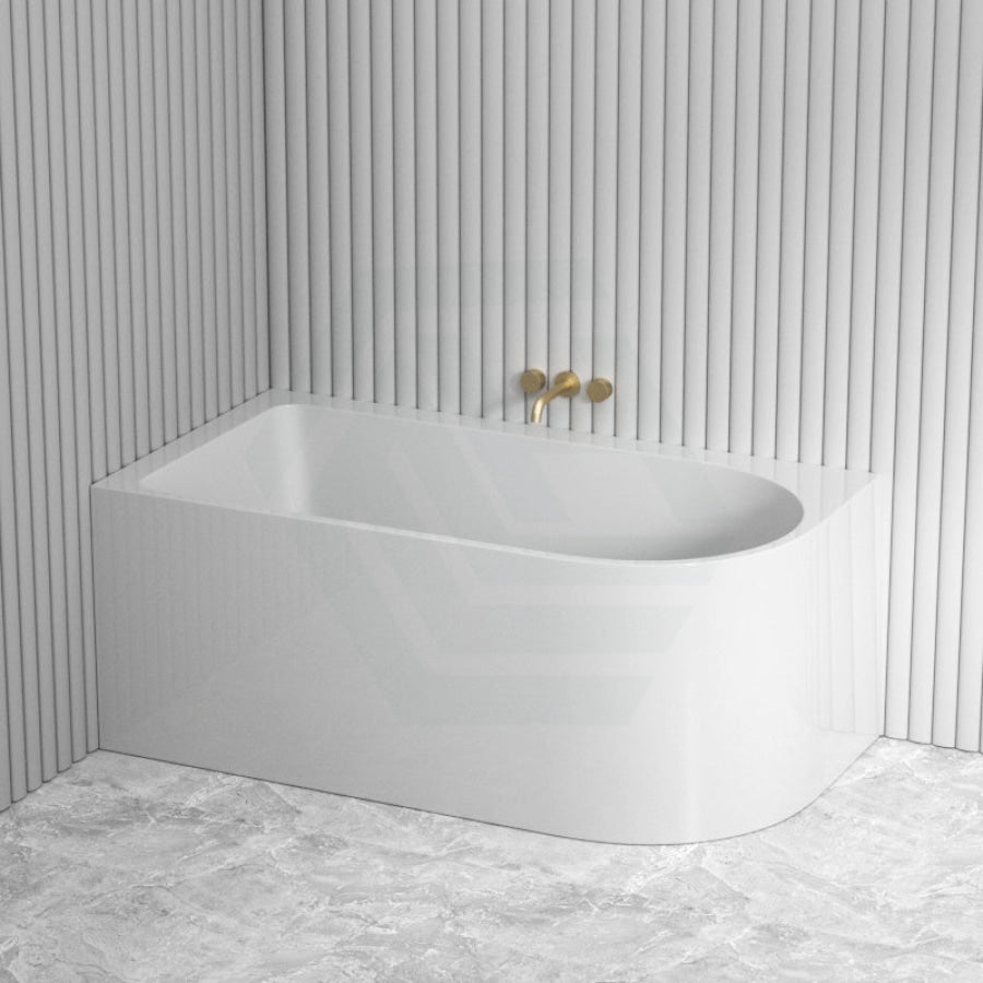 Sleek and practical, this minimalist design combines the look of a freestanding bath with the practicality of a bath that sits flush against two corner walls. Perfect for compact bathrooms.