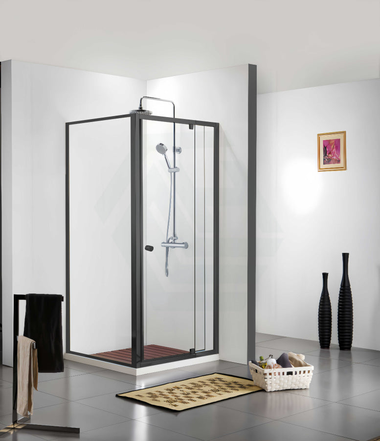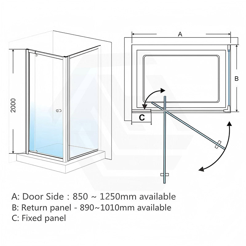 M#1(Gunmetal Grey) 850-1250x2000mm Semi-frameless L Shape Shower Screen Pivot Door with Return Panel Gunmetal Grey Fittings