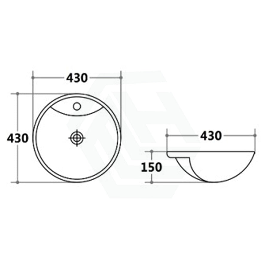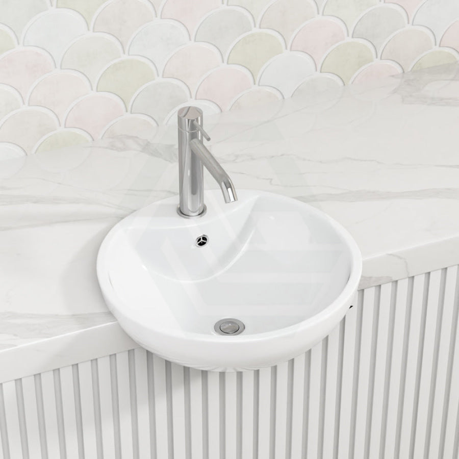 430x430x150mm Round Gloss White Semi Recessed Ceramic Basin One Tap Hole