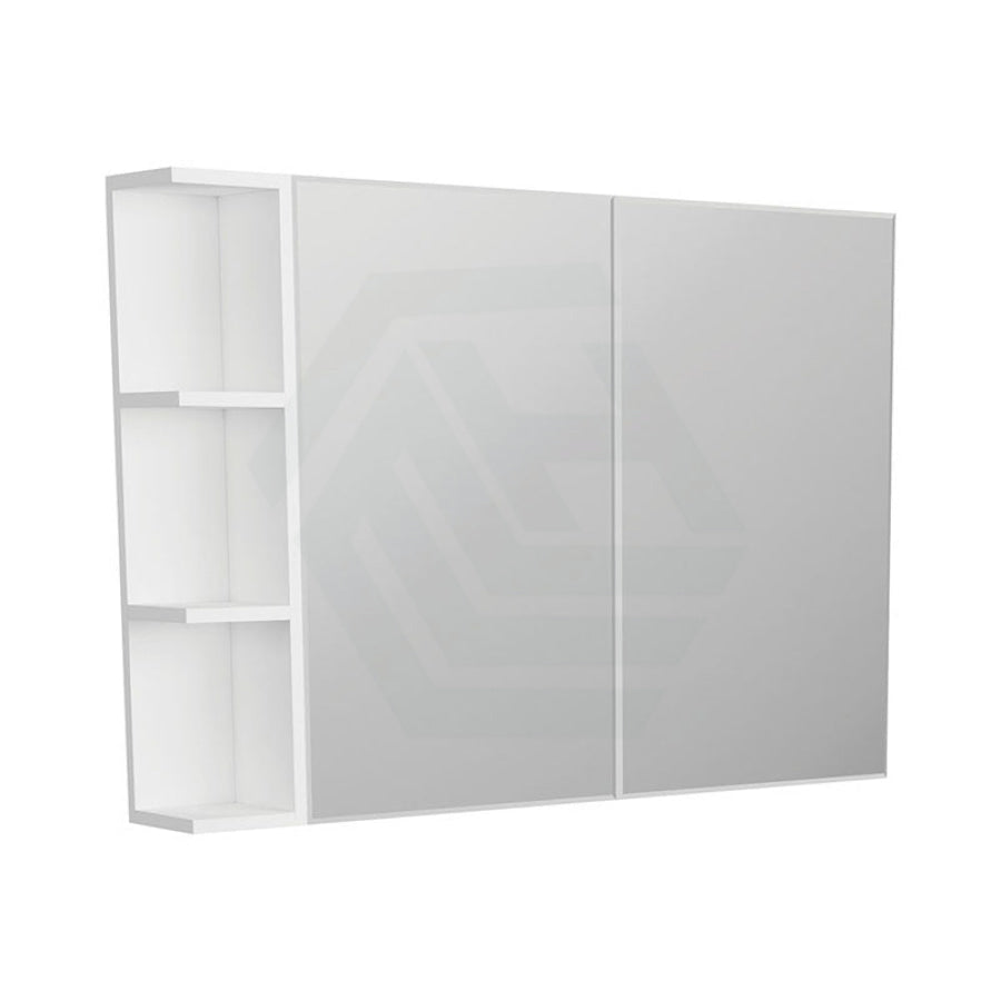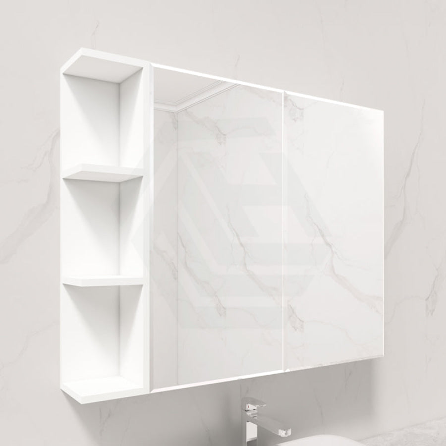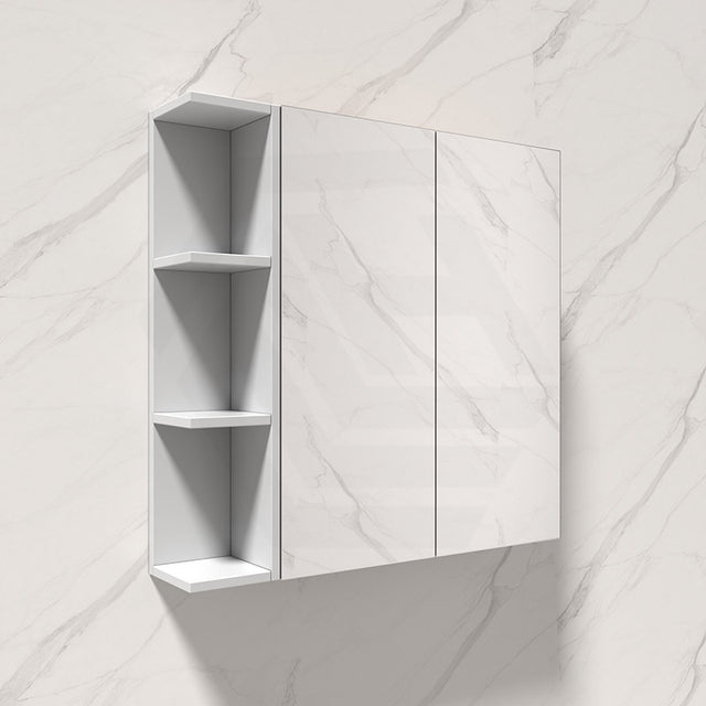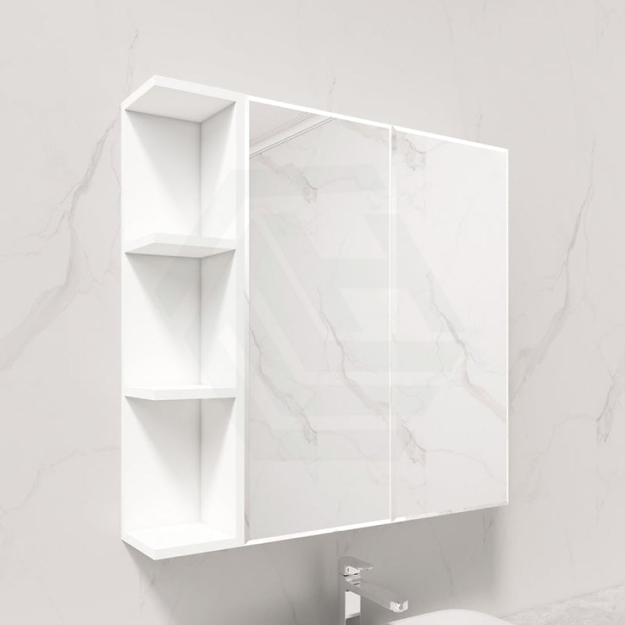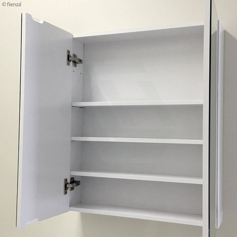 Fienza 600/750/900/1200mm Bevel Edge Gloss White MDF board Mirror Shaving Cabinet 1 Side Shelf