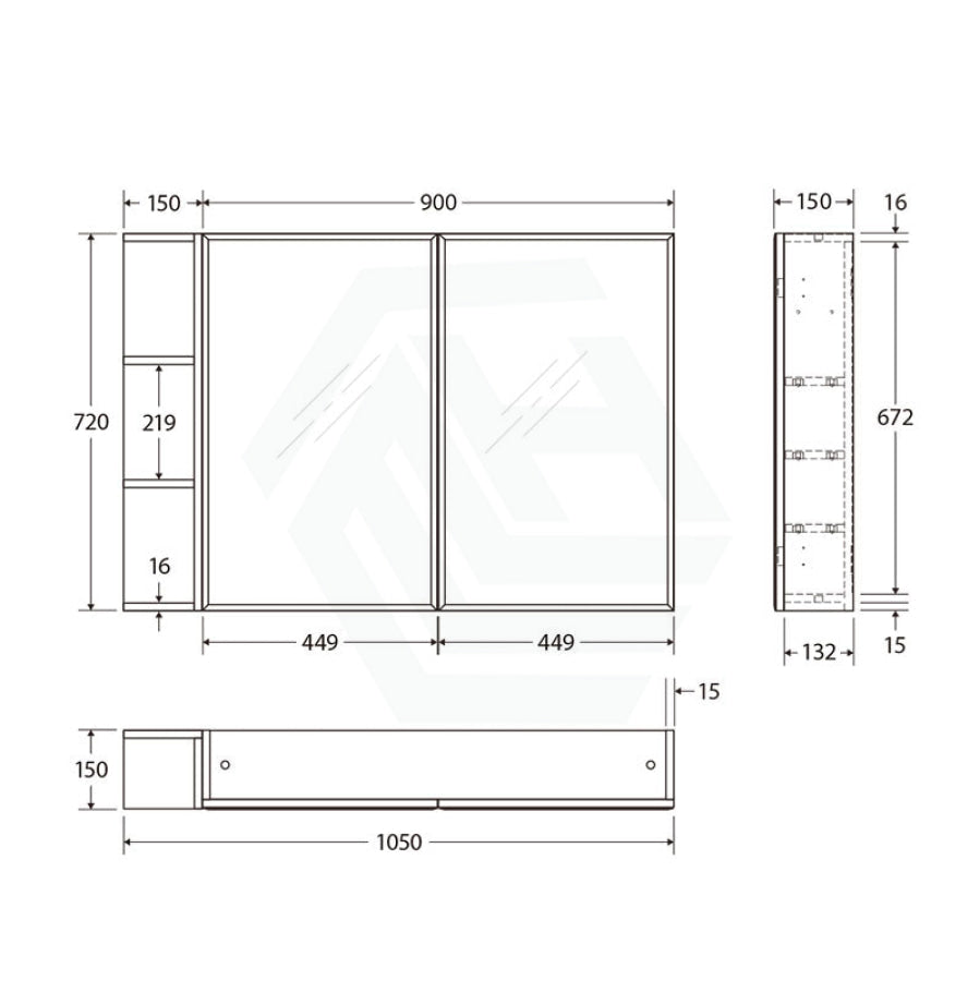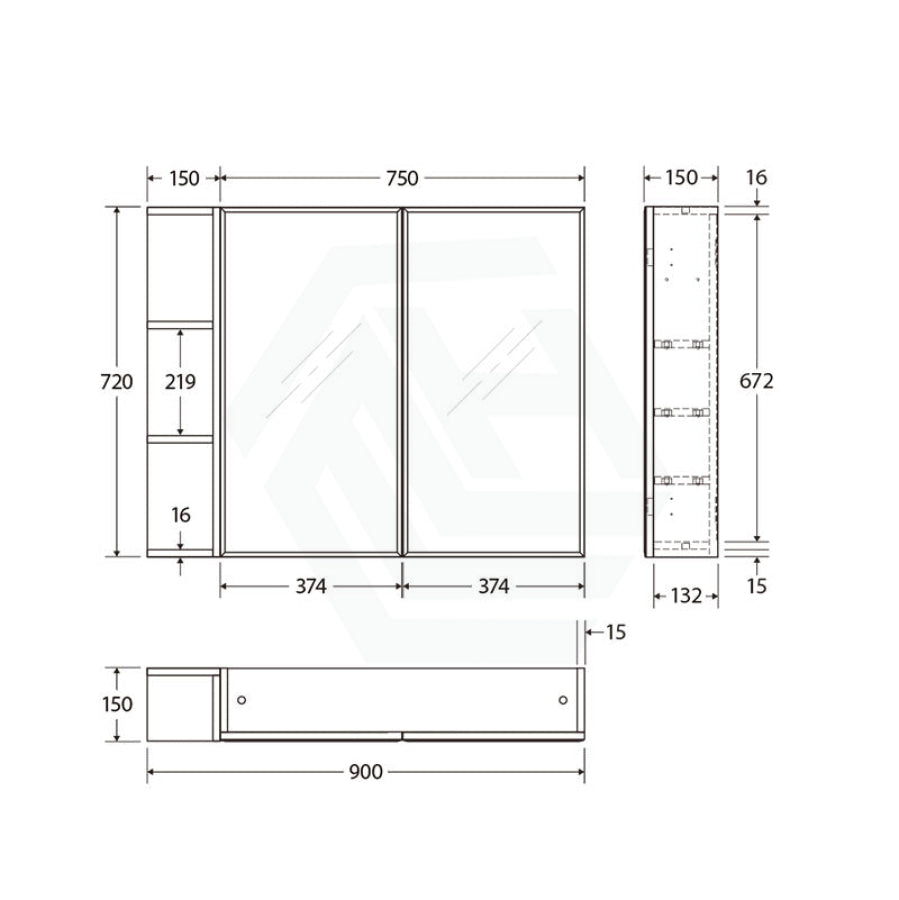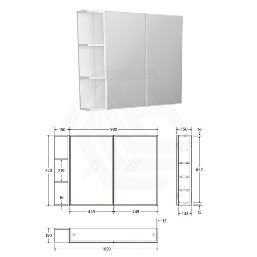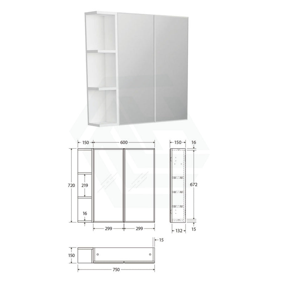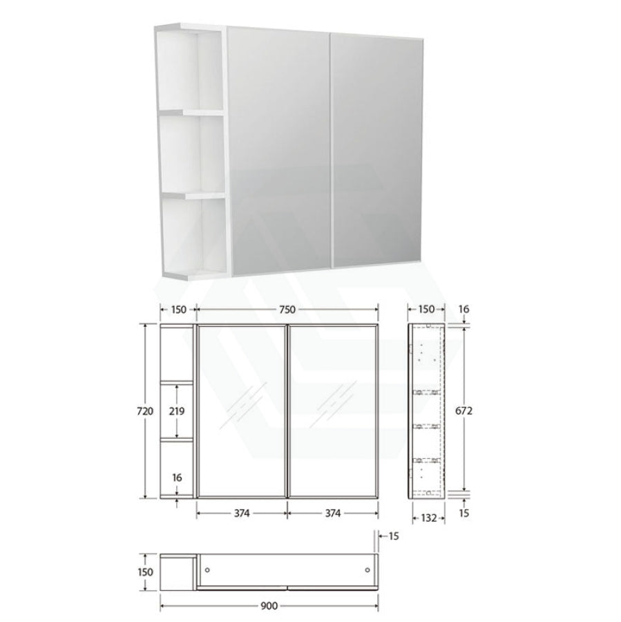 Fienza 600/750/900/1200mm Bevel Edge Gloss White MDF board Mirror Shaving Cabinet 1 Side Shelf