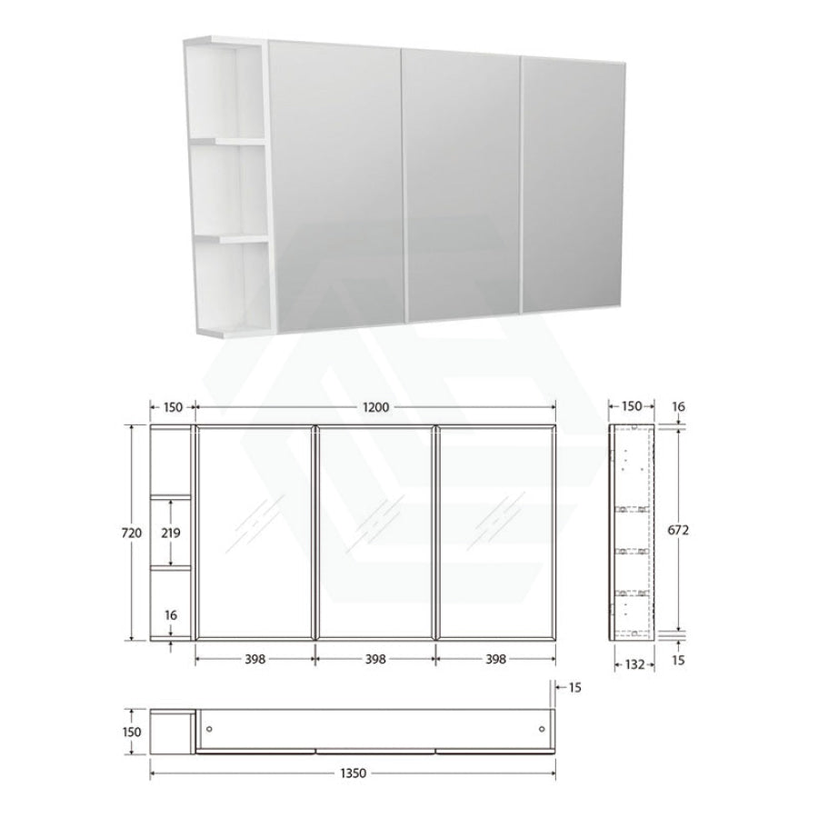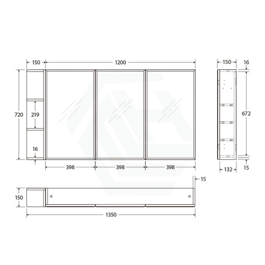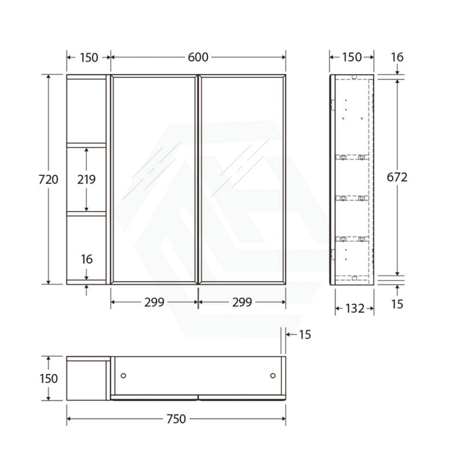 Width: 600/750/900/1200mm x Height: 720mm x Depth: 150mm