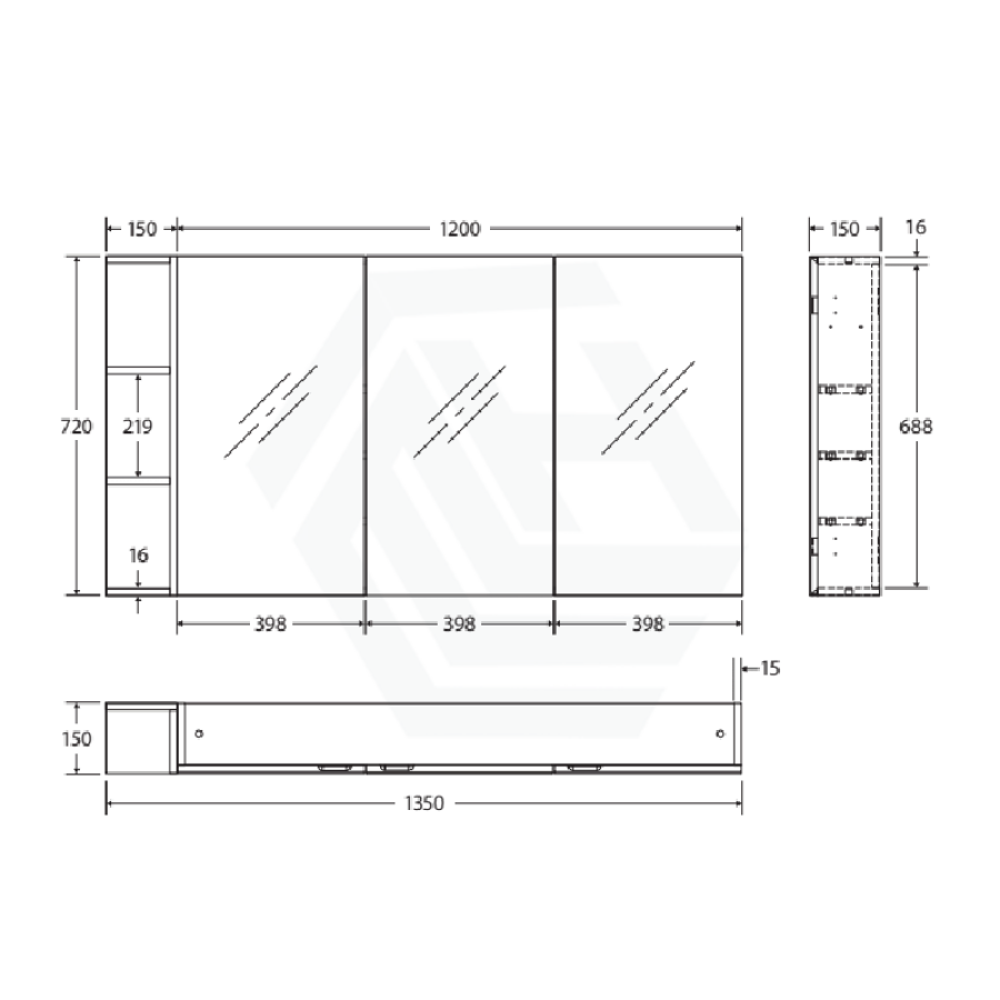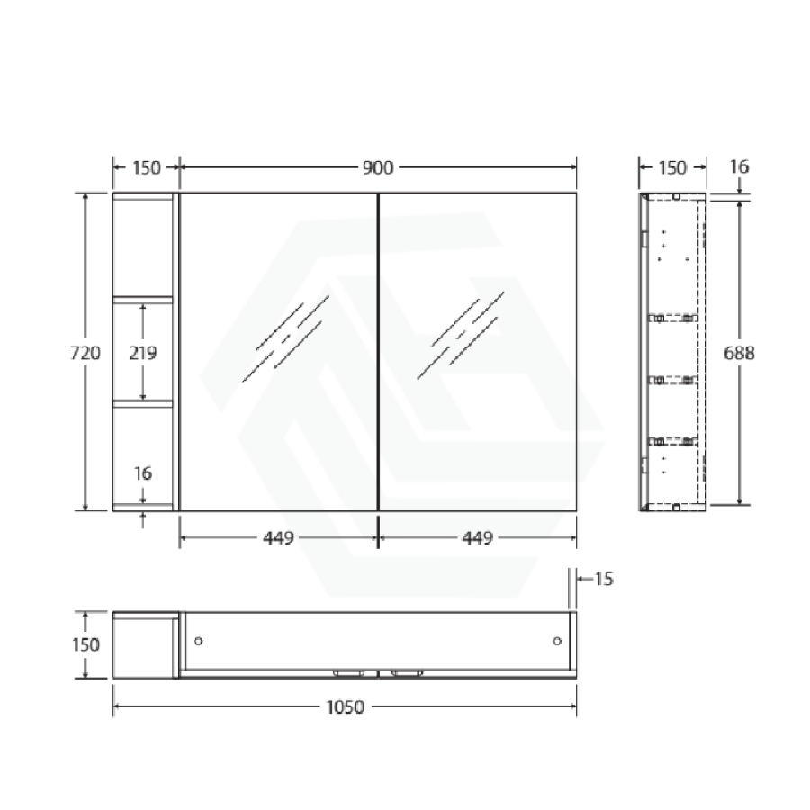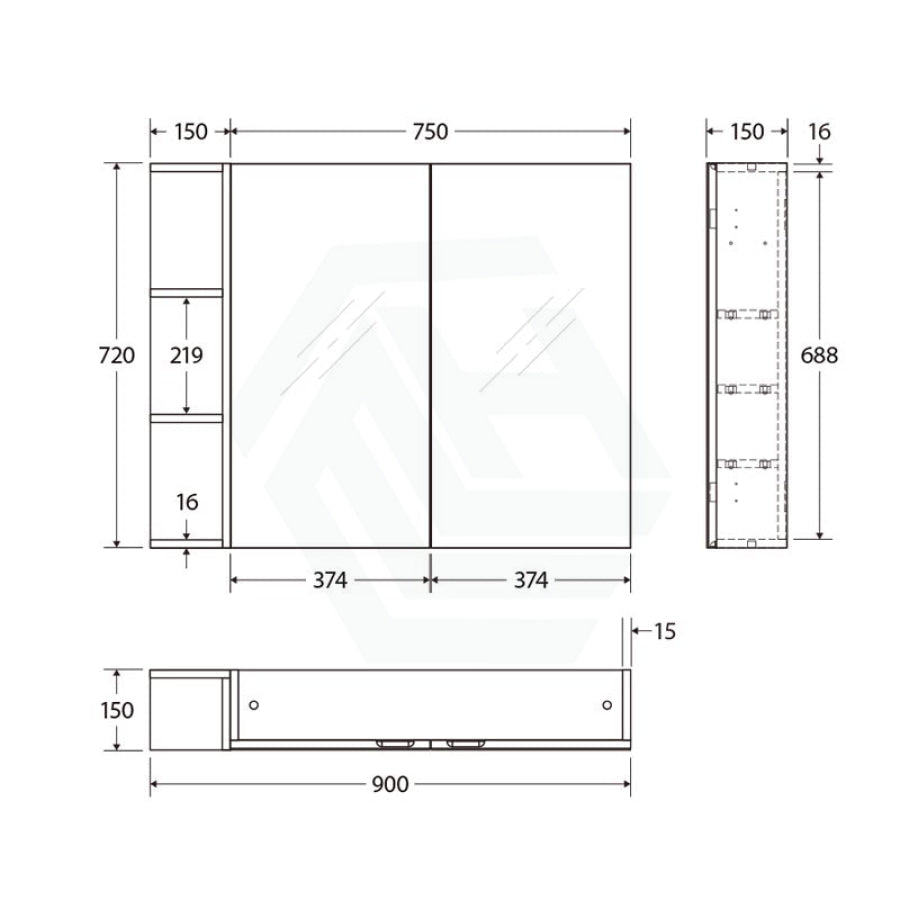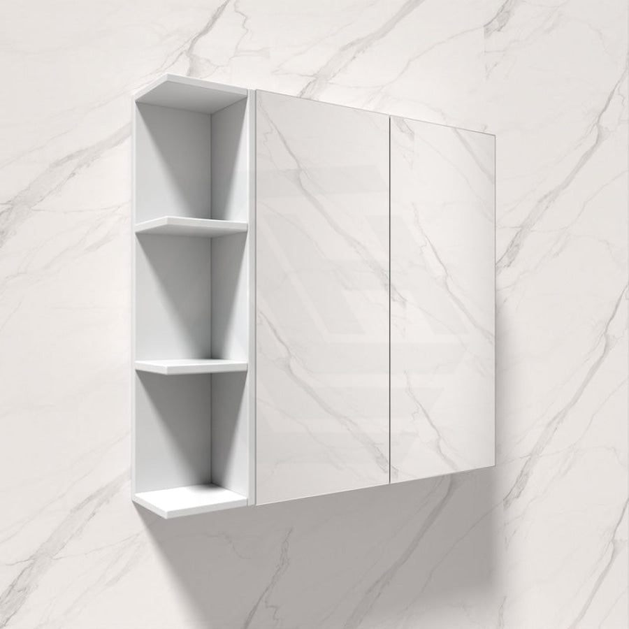 Fienza 750/900/1050/1350mm Pencil Edge Gloss White MDF board Mirror Shaving Cabinet 1 Side Shelf