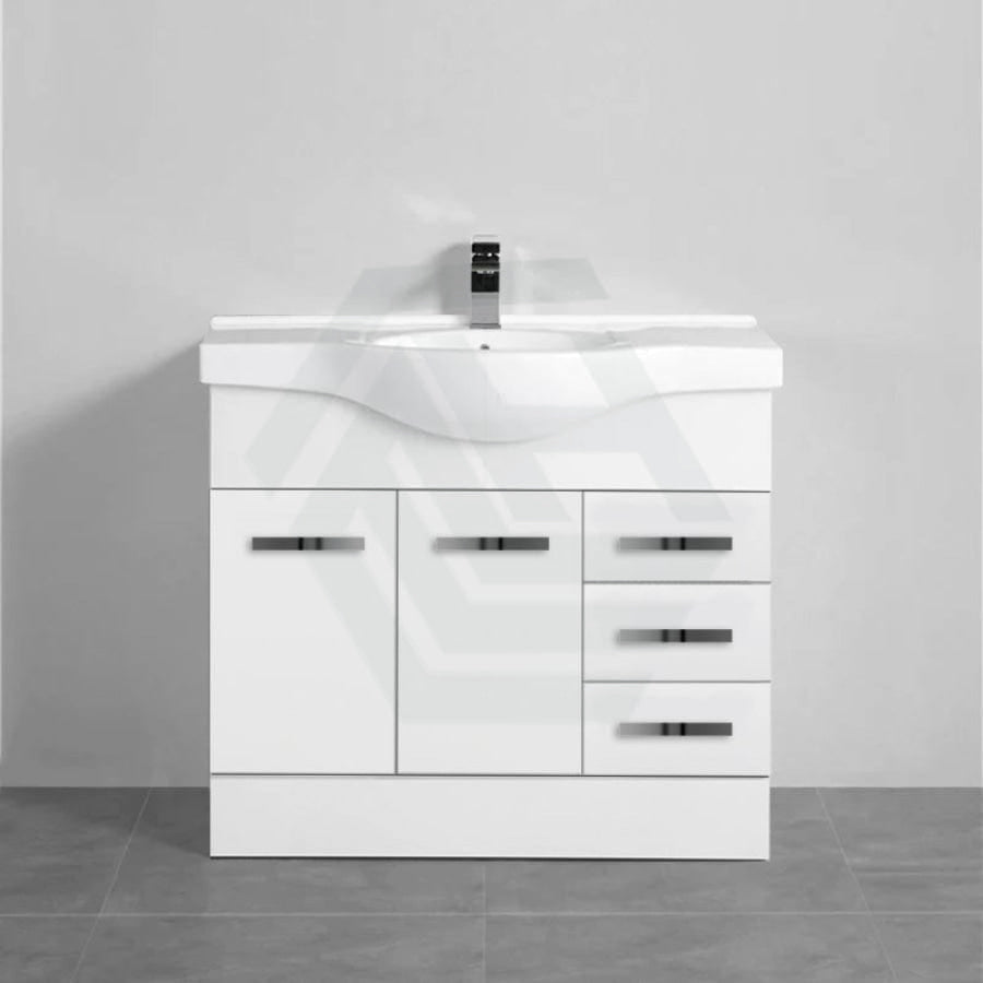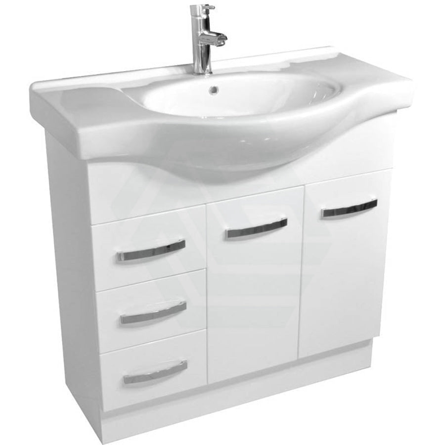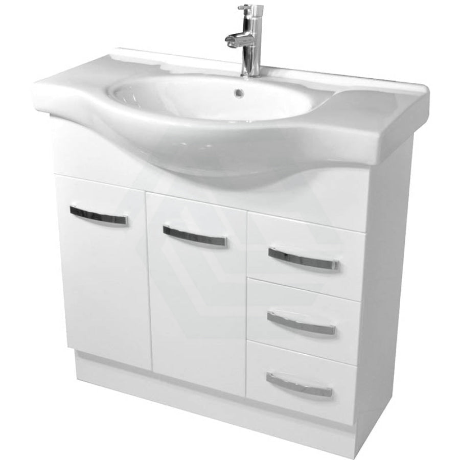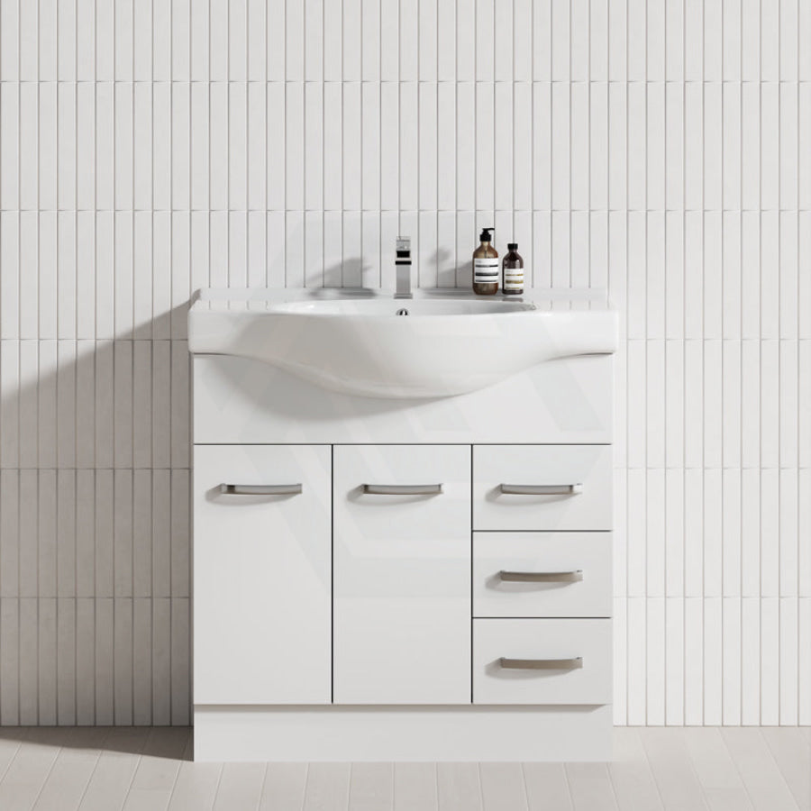 Fienza 600/750/900/1200mm Freestanding Kickboard Vanity Gloss White MDF Board with Single Bowl Ceramic Top