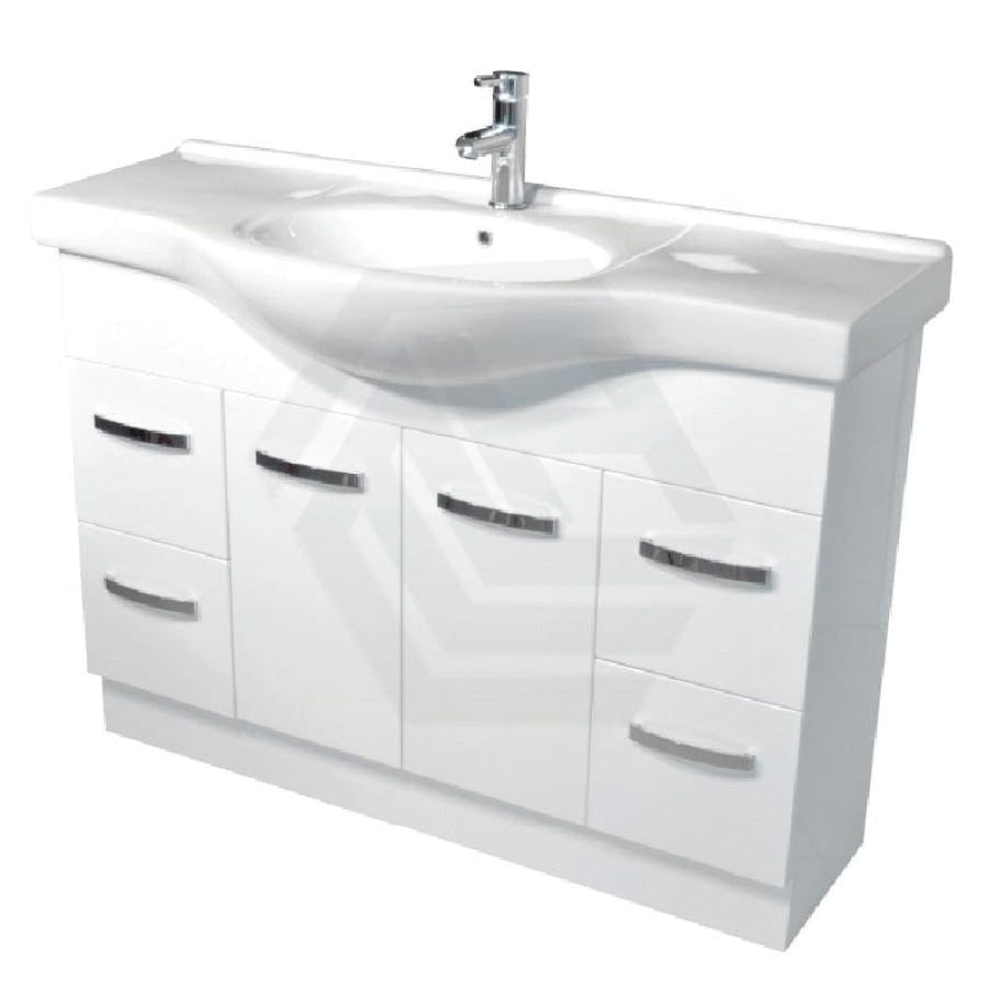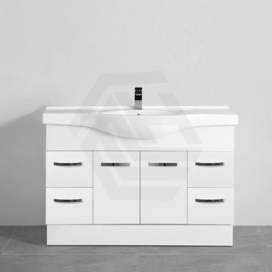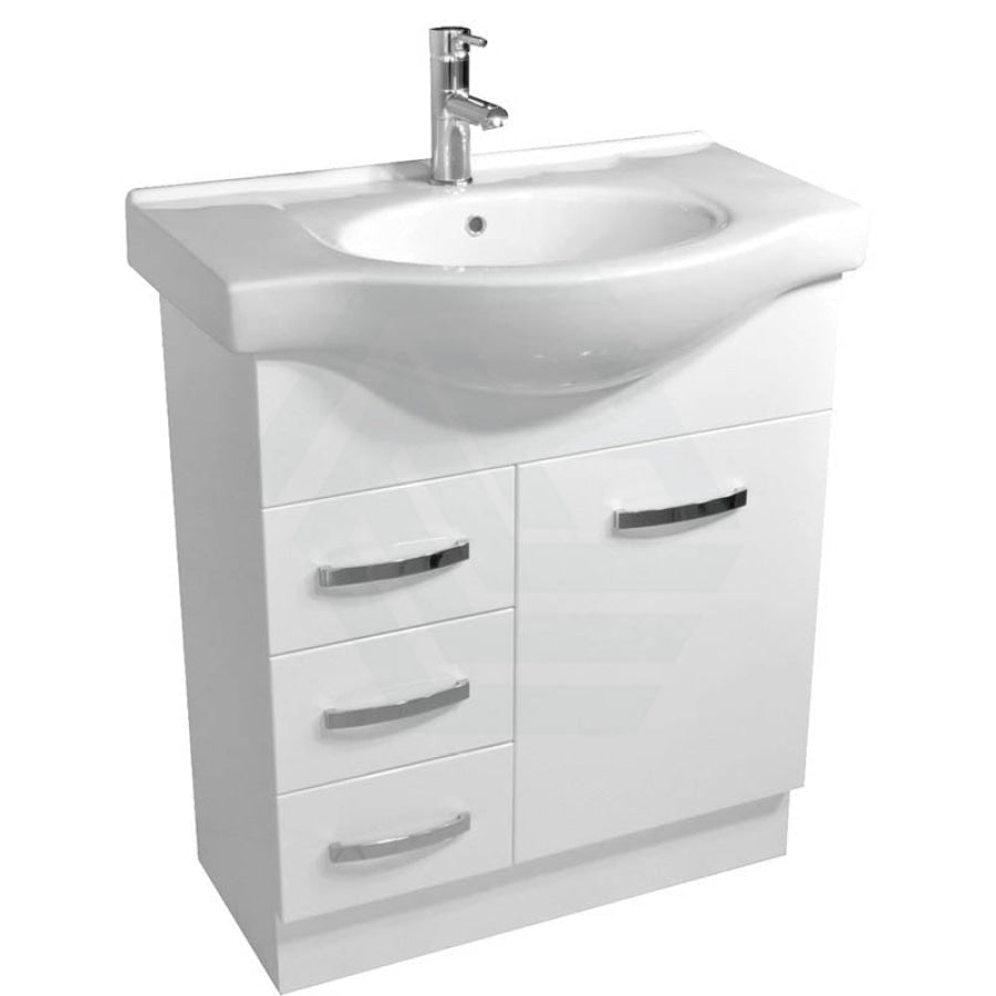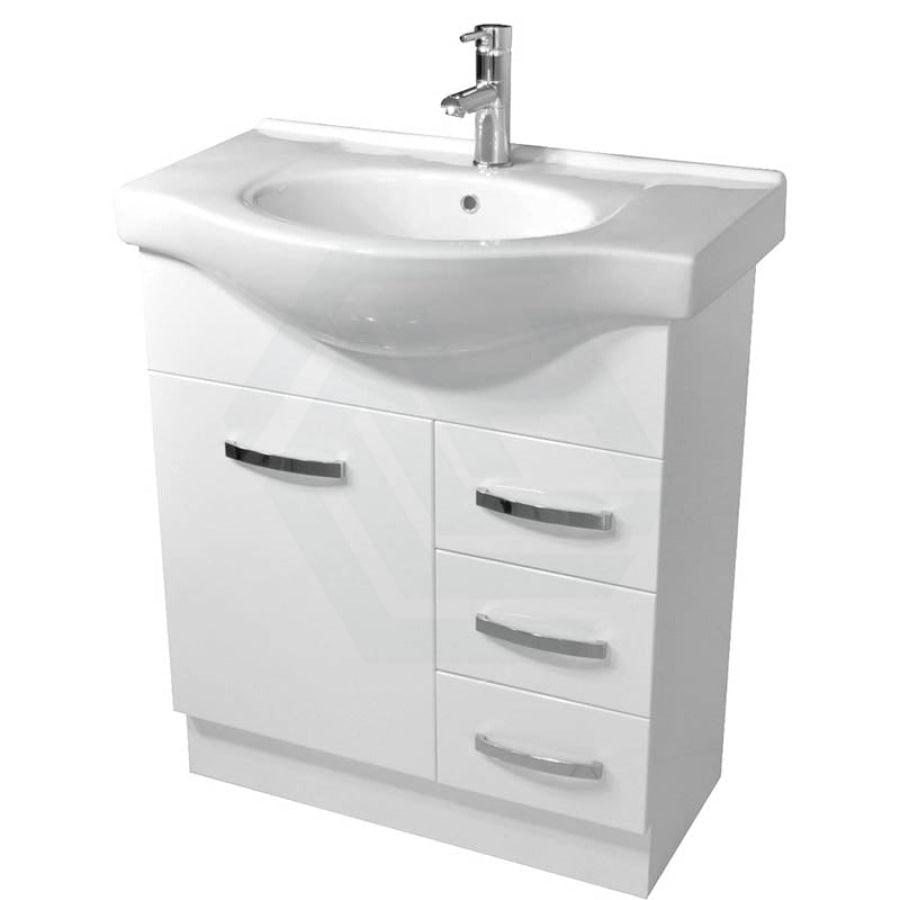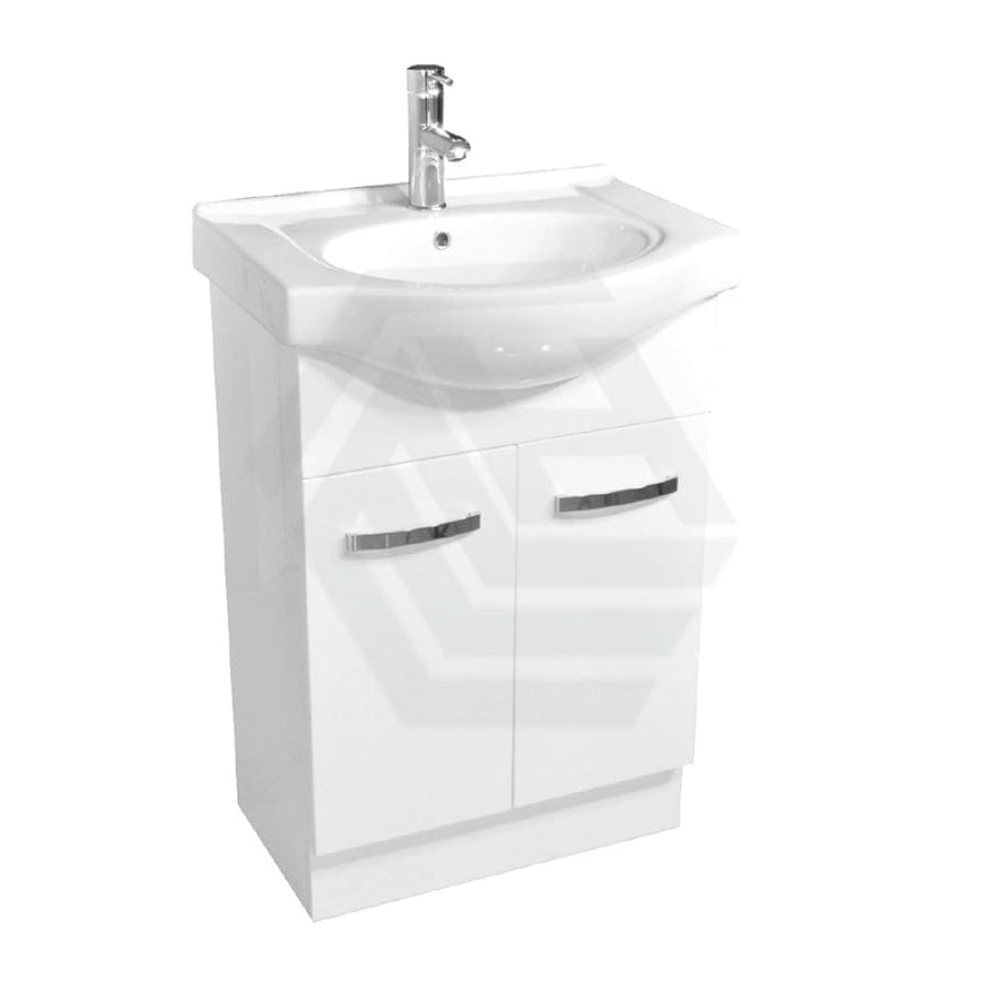 Fienza 600/750/900/1200mm Freestanding Kickboard Vanity Gloss White MDF Board with Single Bowl Ceramic Top