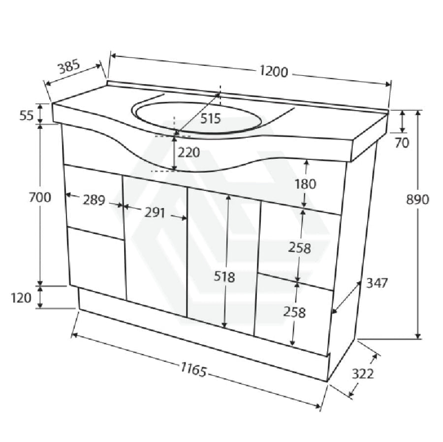 Width: 1200 mm x Depth: 515 mm x Height: 890 mm