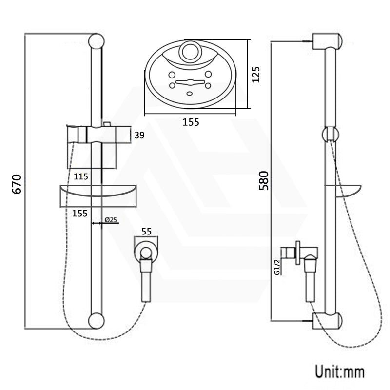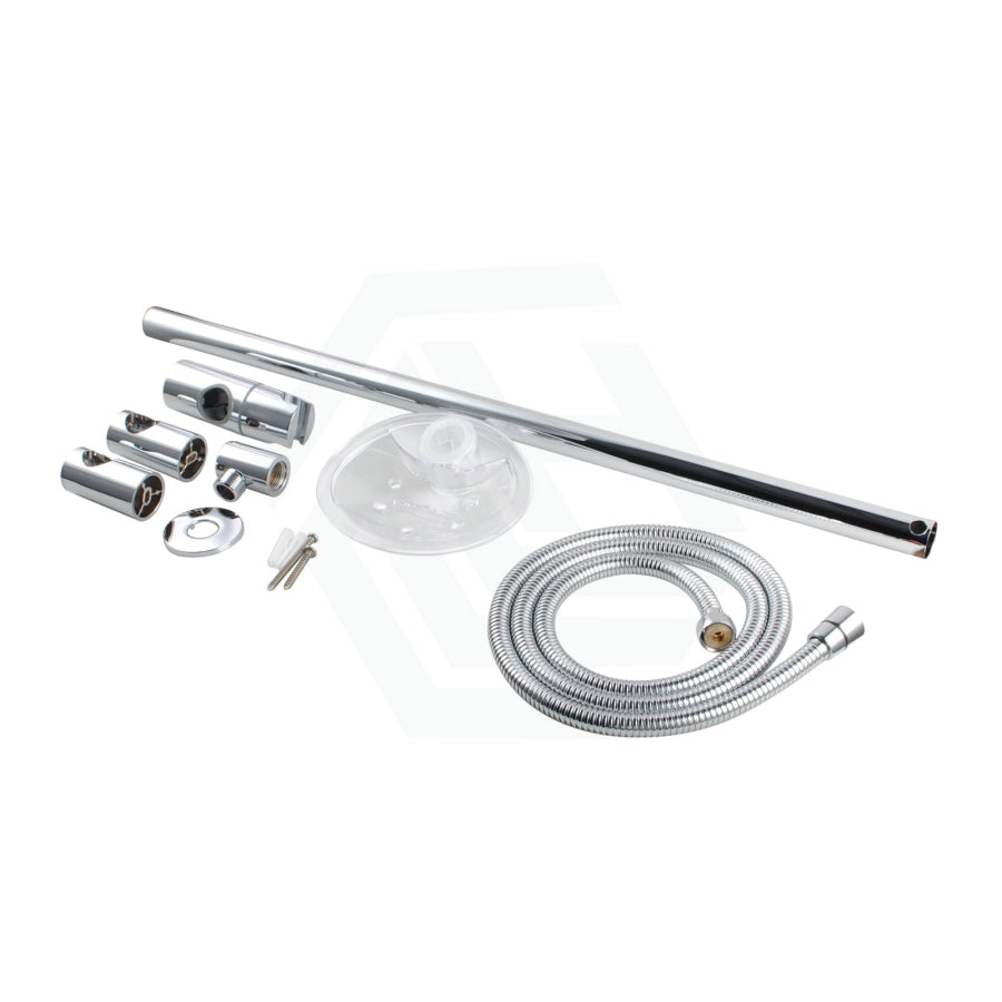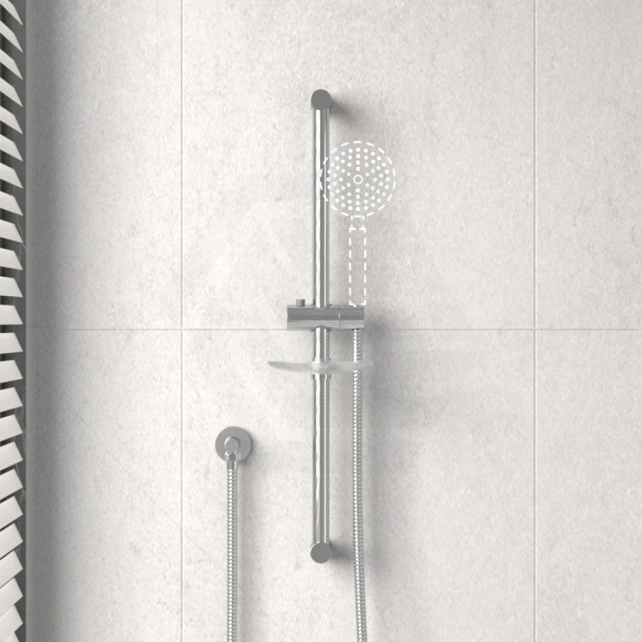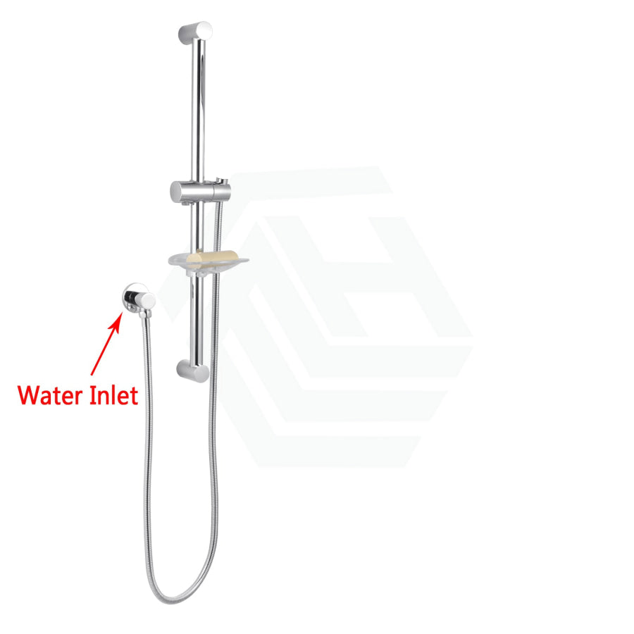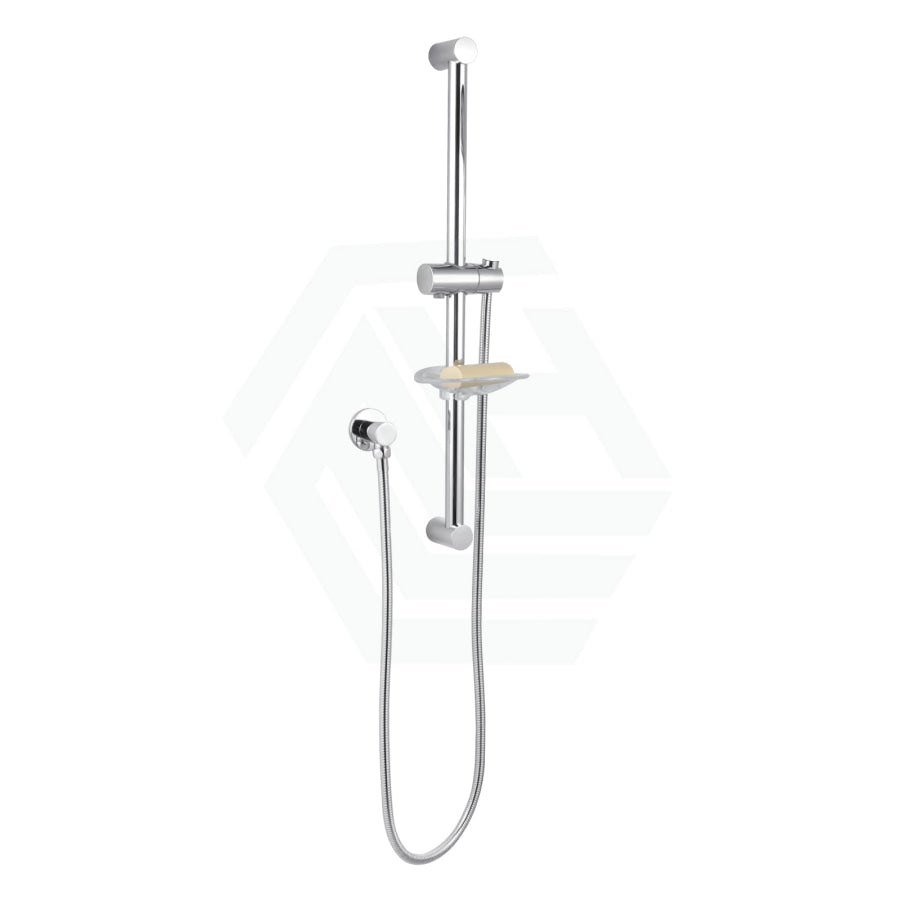 Round Chrome Shower Rail Sliding Holder with Soap Dish Water Hose & Wall Connector Only