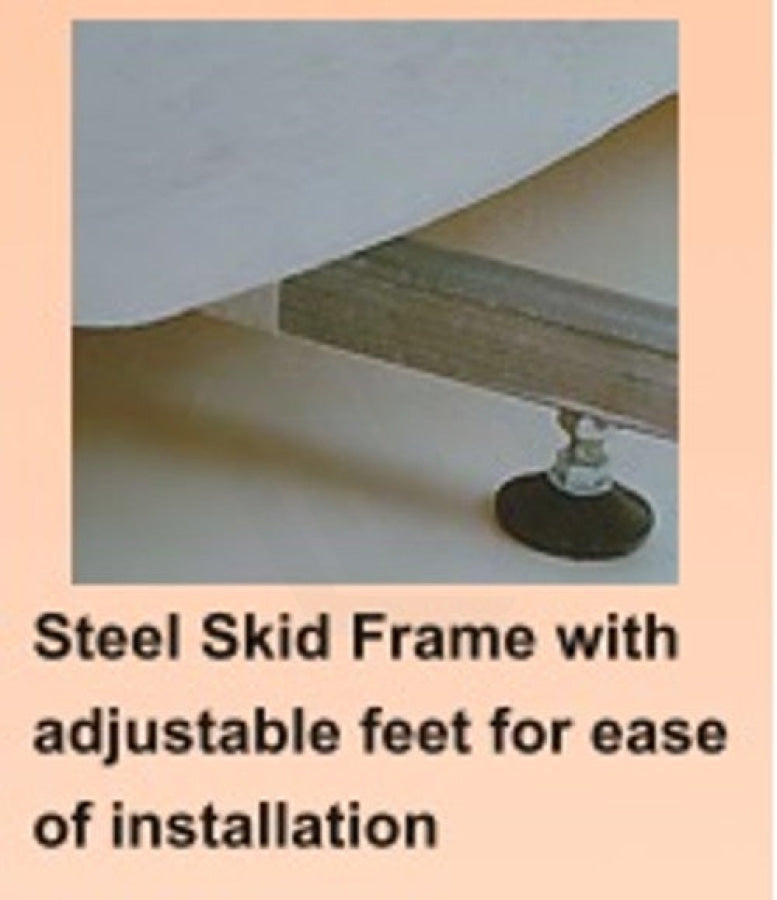 Structural Support:The steel skid frame provides robust support for the spa bathtub, ensuring it remains stable and secure. This is especially important for drop-in tubs which need a reliable base to maintain their position.