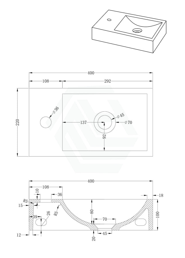 - Custom orders/items including but not limit to, stone top with cut tap/waste hole(s); custom made vanity/stone top; custom made shower screen; smart bidet seat; custom cut to size shower grates etc...