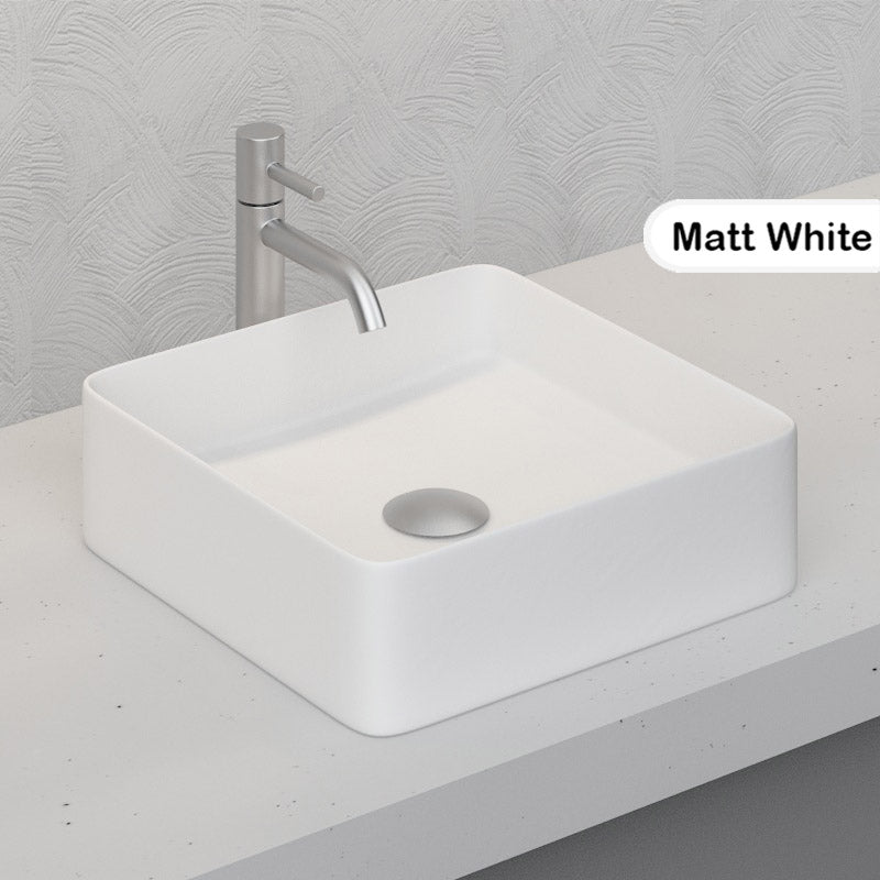370x370x130mm Square Above Counter Top Ceramic Basin Matt White / Matt Black
