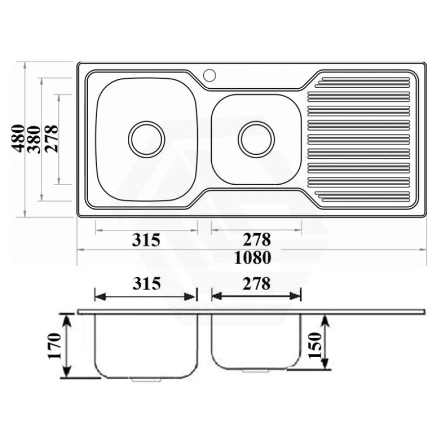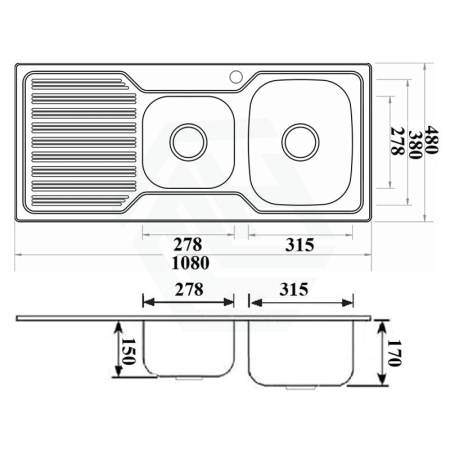 Eden 1080x480x170mm 1&3/4 Stainless Steel Kitchen Sink Single Drainer Left Right Available