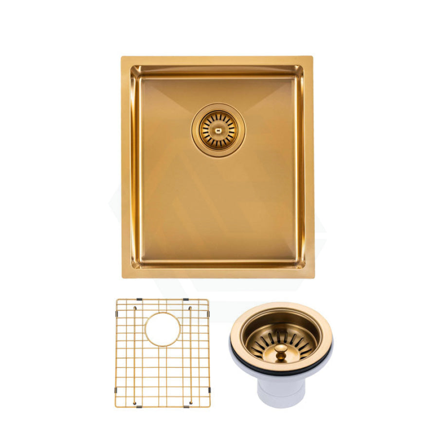 G#1(Gold) 390x450x215mm Brushed Brass Gold PVD Kitchen Sink Single Bowl Top/Undermount