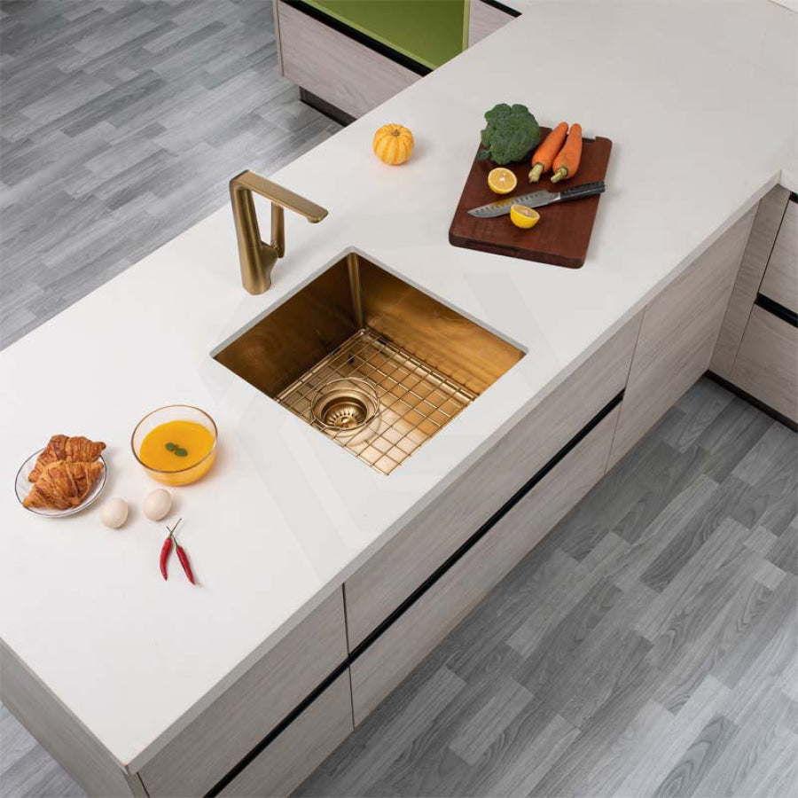 The 390x450x215mm Brushed Gold PVD Kitchen Sink Single Bowl Top/Undermount would give an easy-to-clean and elegant addition to any kitchen.