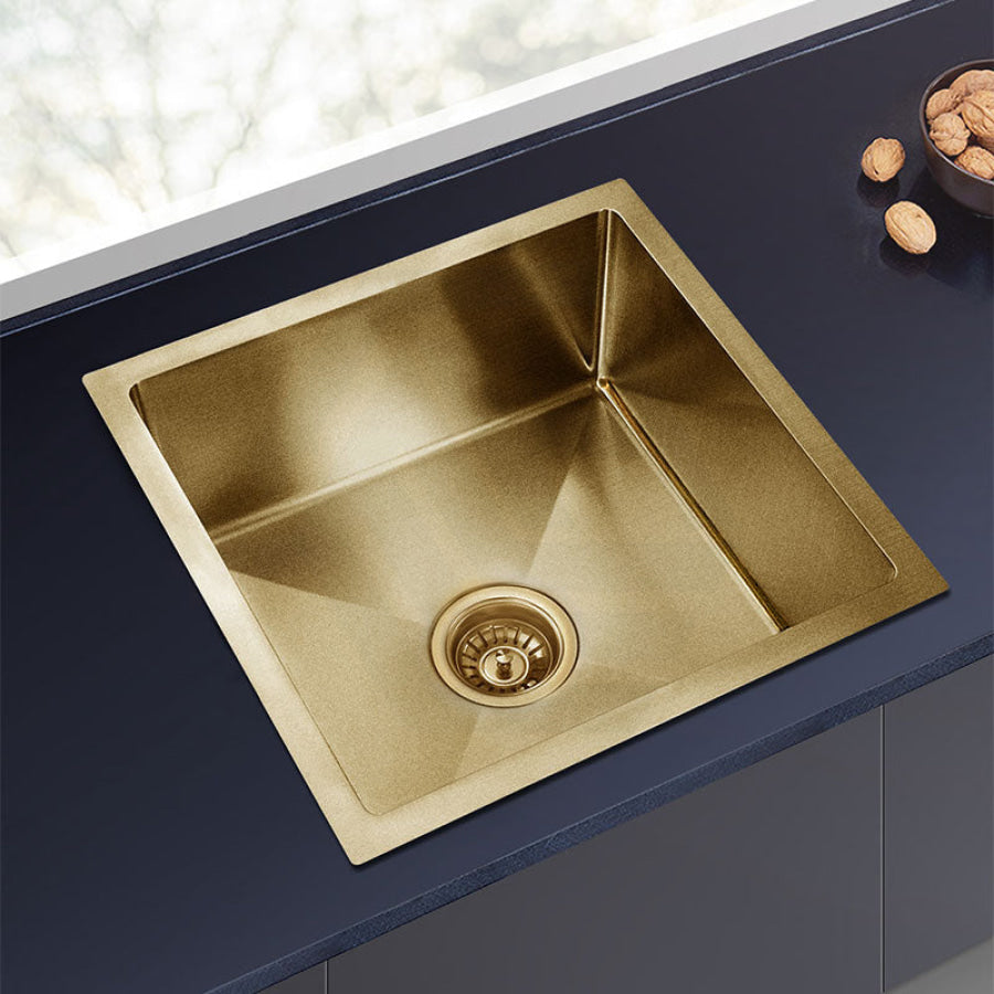 The 440x440x205mm 1.2mm Round Corner Stainless Steel Brushed Yellow Gold Single Bowl Top/Flush/Undermount Kitchen/Laundry Sink would give an easy-to-clean and elegant addition to your kitchens/laudries.