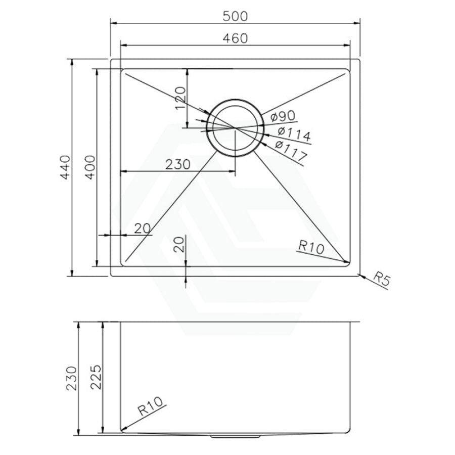 The 500x440x230mm 1.2mm Handmade Top/Undermount Single Bowl Kitchen/Laundry Sink would give an easy-to-clean and elegant addition to your kitchens/laudries.