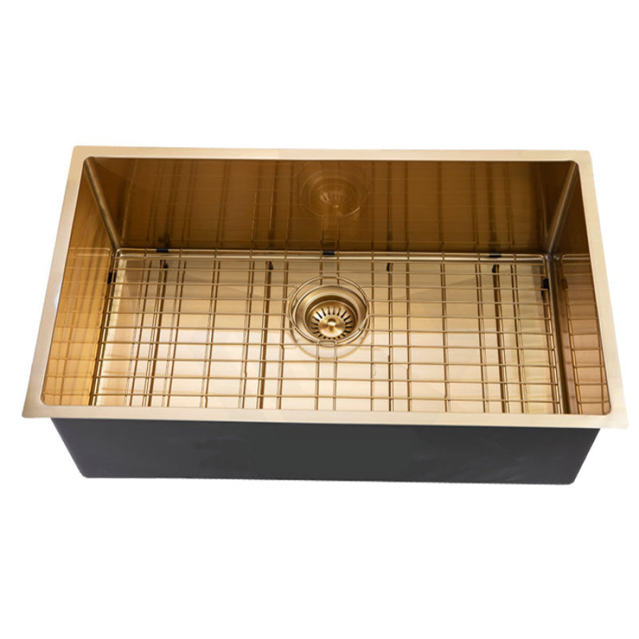 G#1(Gold) 762x457x254mm Brushed Brass Gold PVD Single Bowl Kitchen Sink Top/Undermount