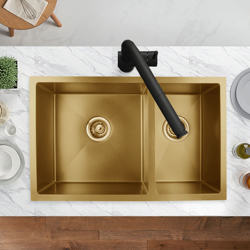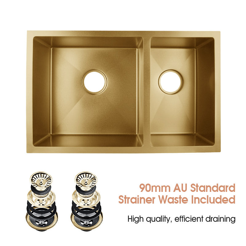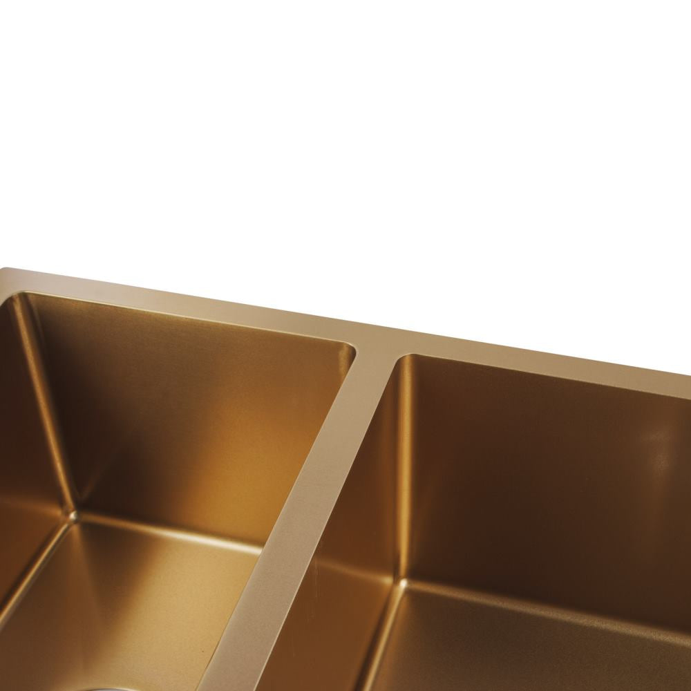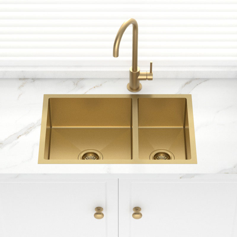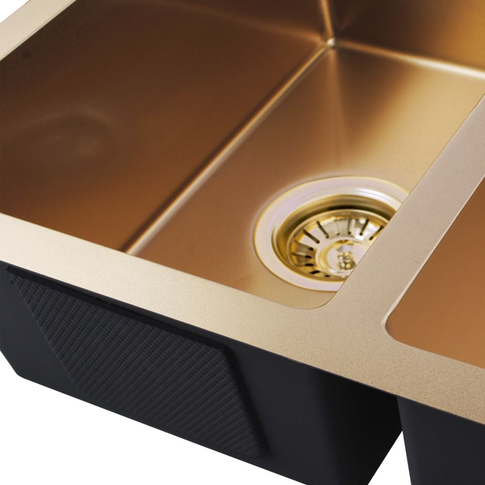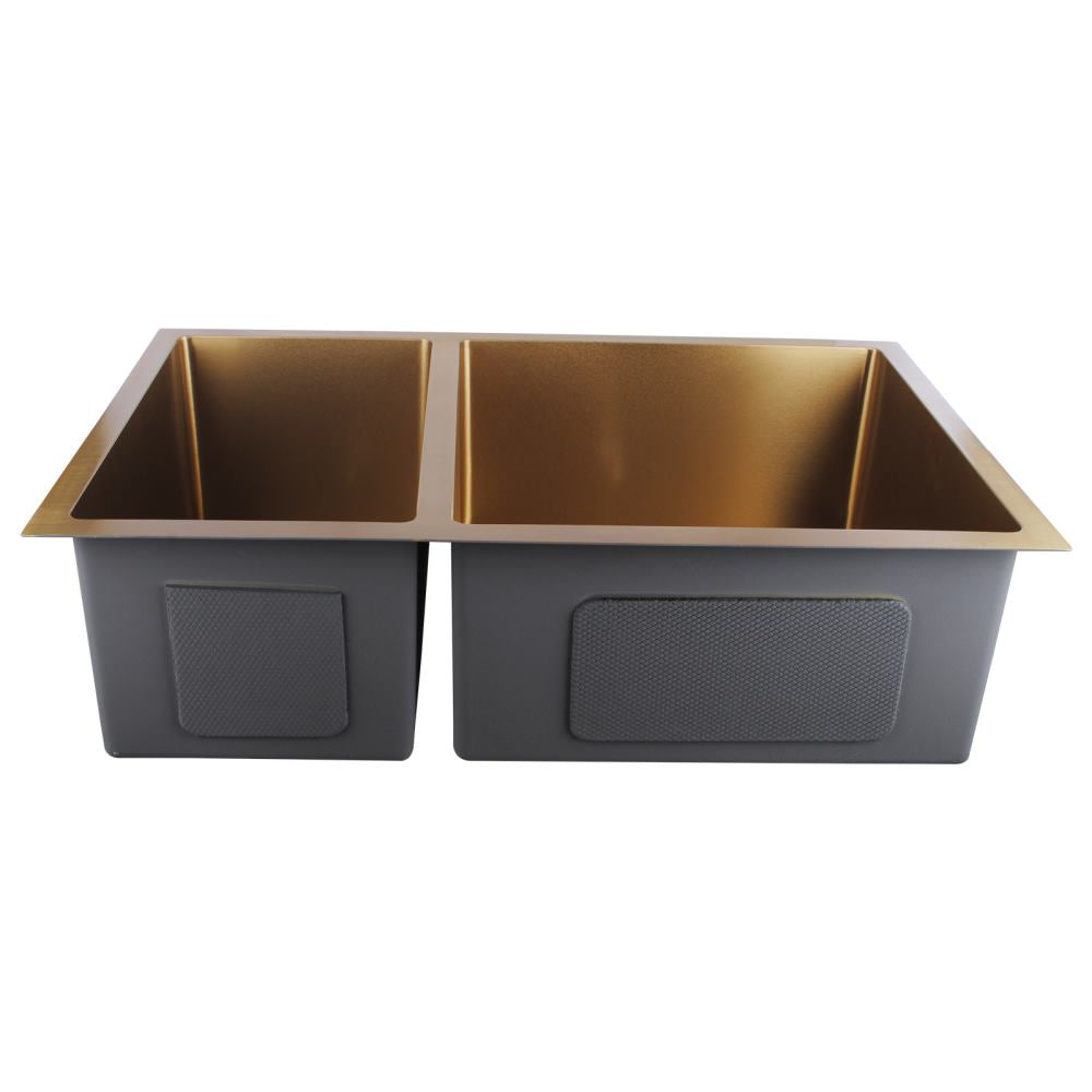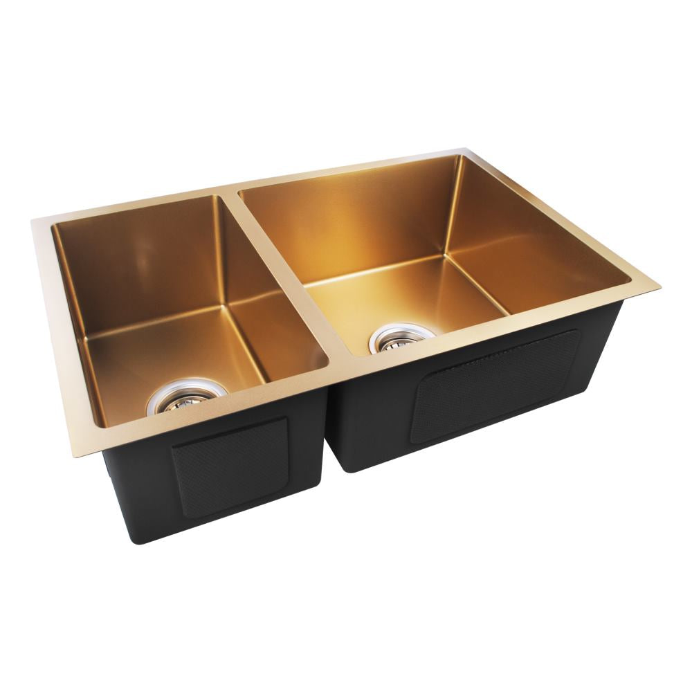 The 710x450x205mm 1.2mm Brushed Yellow Gold Handmade Round Corners Double Bowls Top/Under/Flush Mount Kitchen Sink would give an easy-to-clean and elegant addition to any kitchen.