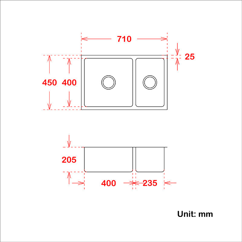 Overall Size | 710mmL x 450mmW x 205mmH |