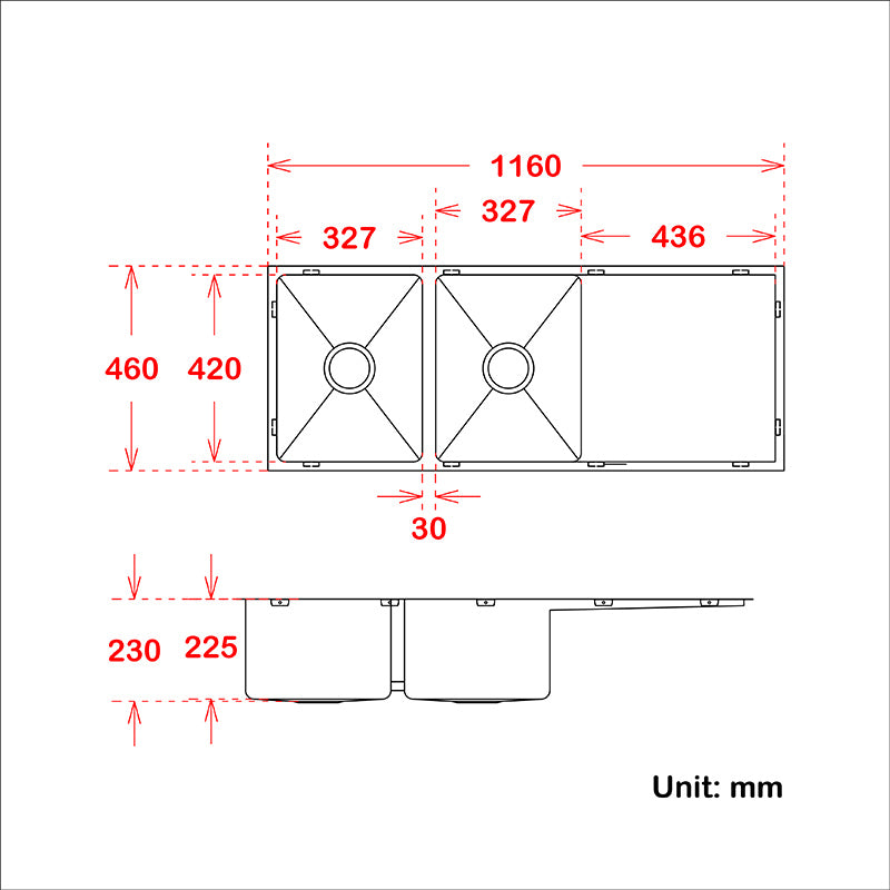 | Cut Out Size | 1120 x 420mm (Reference Only, actual sink should be present to ensure perfect cut out) |