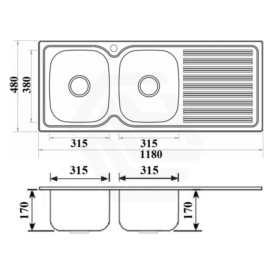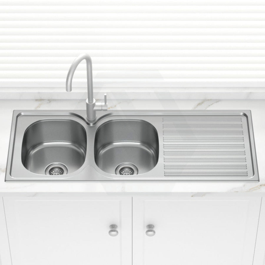 Eden 1180x480x170mm Stainless Steel Kitchen Sink Double Bowls Left Right Available