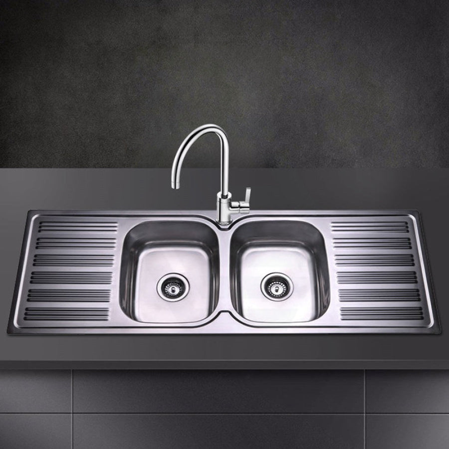 The Eden 1380x480x180mm Stainless Steel Kitchen Sink Double Bowls Drainer would give an easy-to-clean and elegant addition to any kitchen.