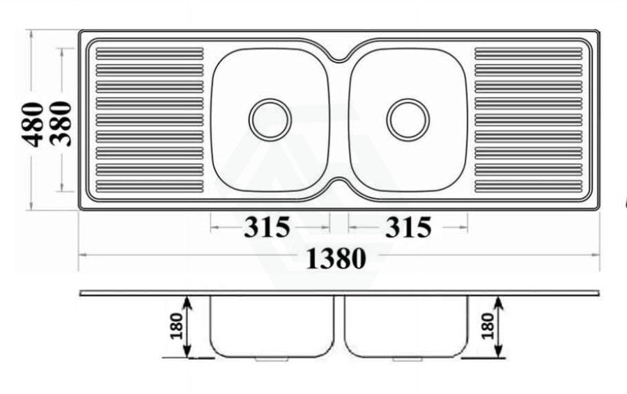 Eden 1380x480x180mm Stainless Steel Kitchen Sink Double Bowls Drainer