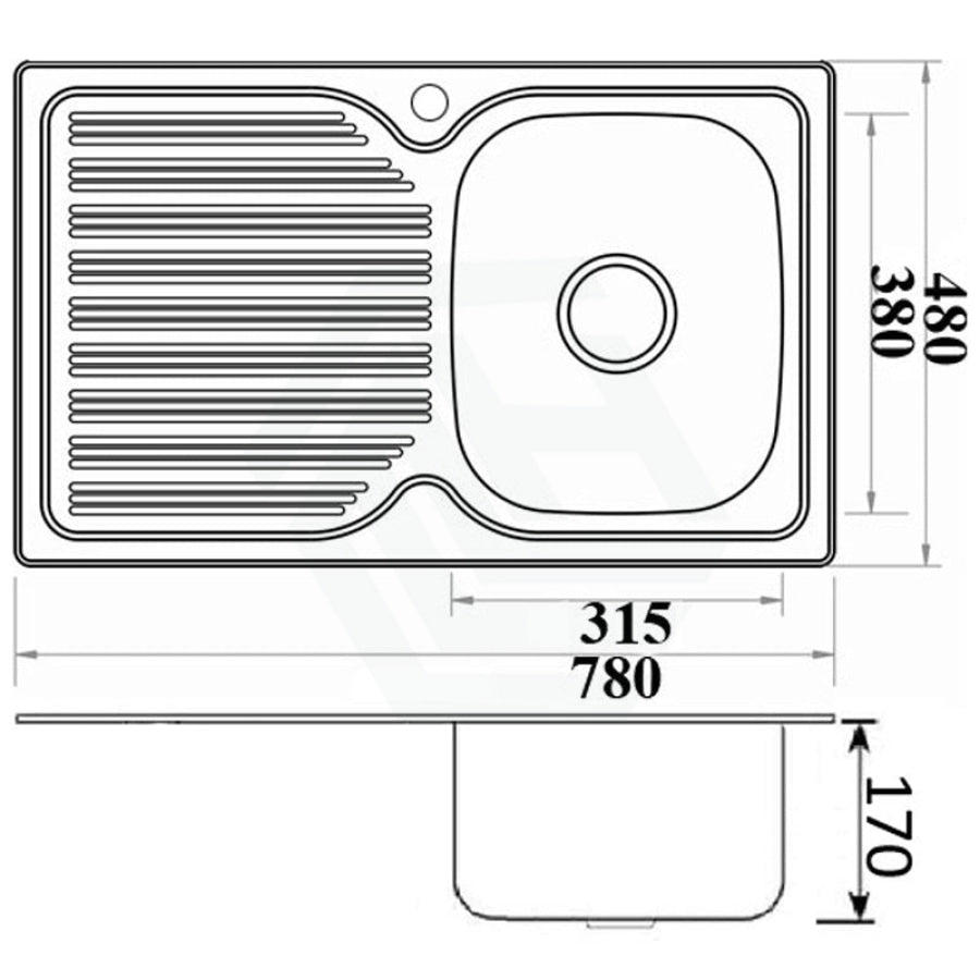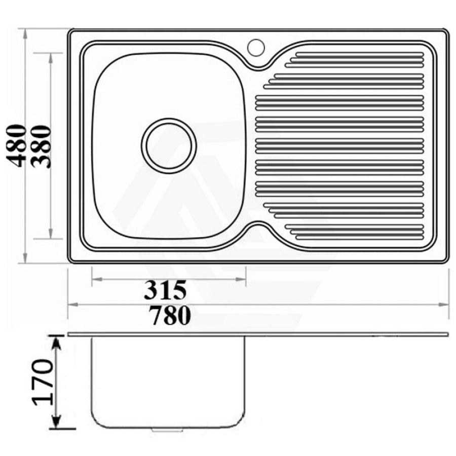 Eden 780x480x170mm Stainless Steel Kitchen Sink Left Right Single Bowl Available Drainer Board