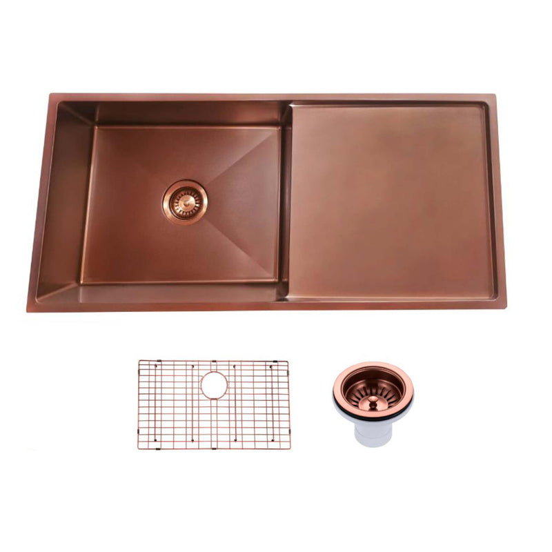 The 960x450x230mm 1.2mm Rose Gold Handmade Top/Undermount Single Bowl Kitchen Sink would give an easy-to-clean and elegant addition to any kitchen.