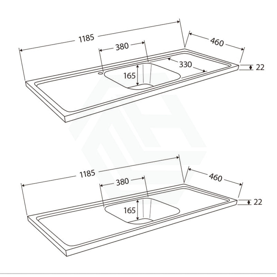 Width: 1185mm x Depth: 460mm x Height: 22mm