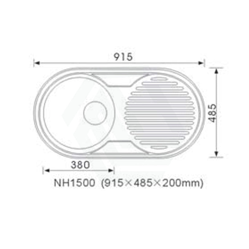 The P&P Round Stainless Steel Kitchen Sink uniquely blends a classic circular basin with a generous rectangular drainer board. Crafted from 0.8mm 304 stainless steel, its 915mm length provides ample workspace, while the 380mm diameter round bowl offers a distinct and practical washing area. This model is designed for convenient top-mount installation and includes a strainer waste.