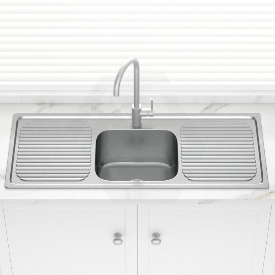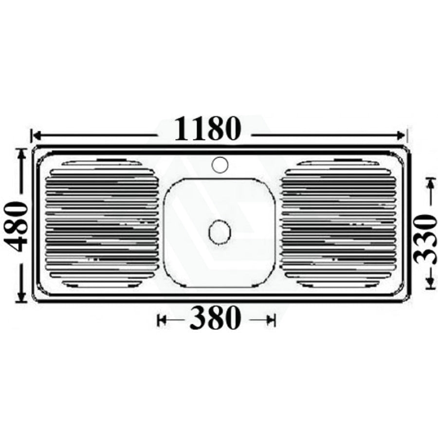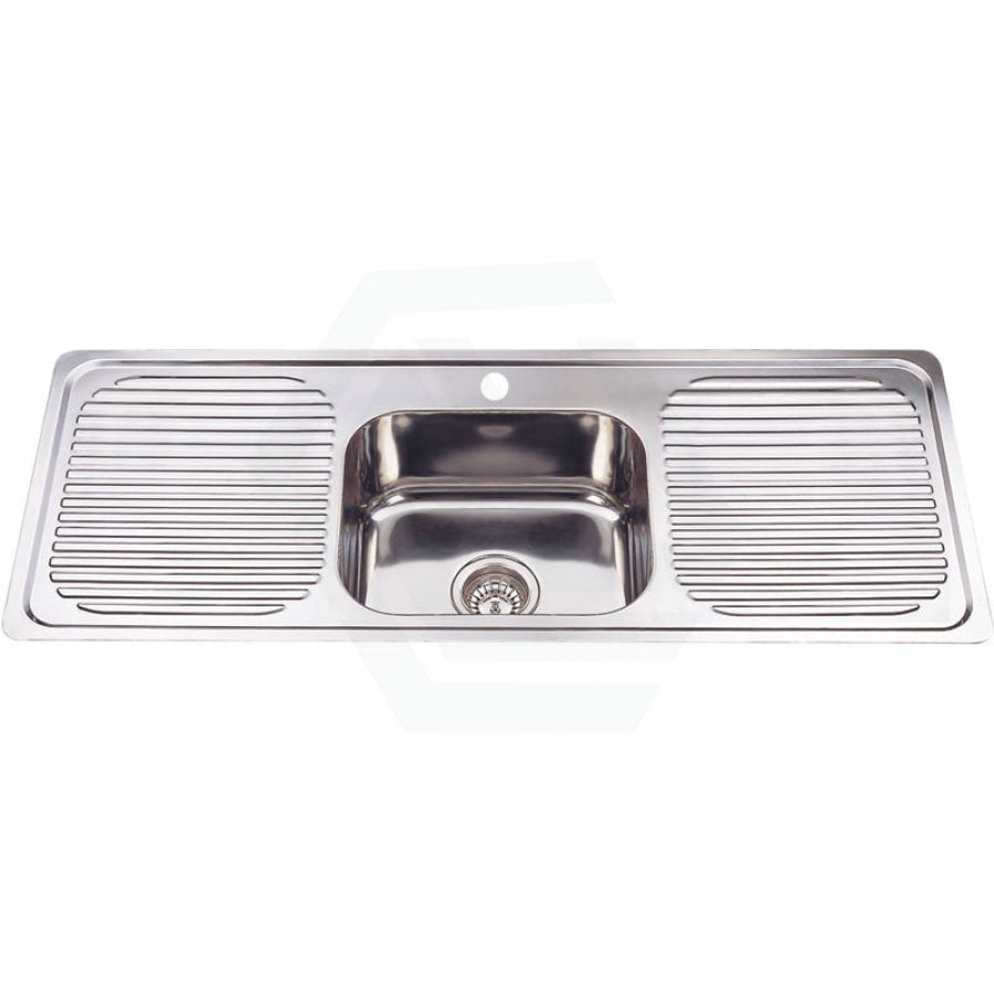 1180x480x170mm Stainless Steel Kitchen Sink Single Bowl Double Drainer Boards
