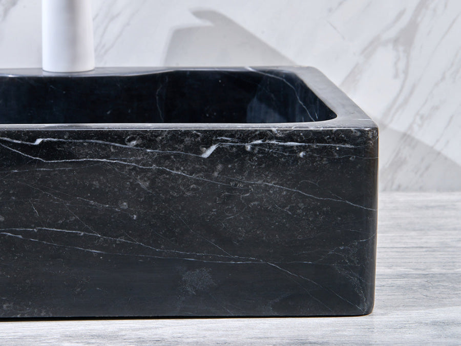 500x380x150mm Above Counter Stone Basin Rectangle Marble Surface Bathroom Wash Basin Antique Vintage with Tap Hole