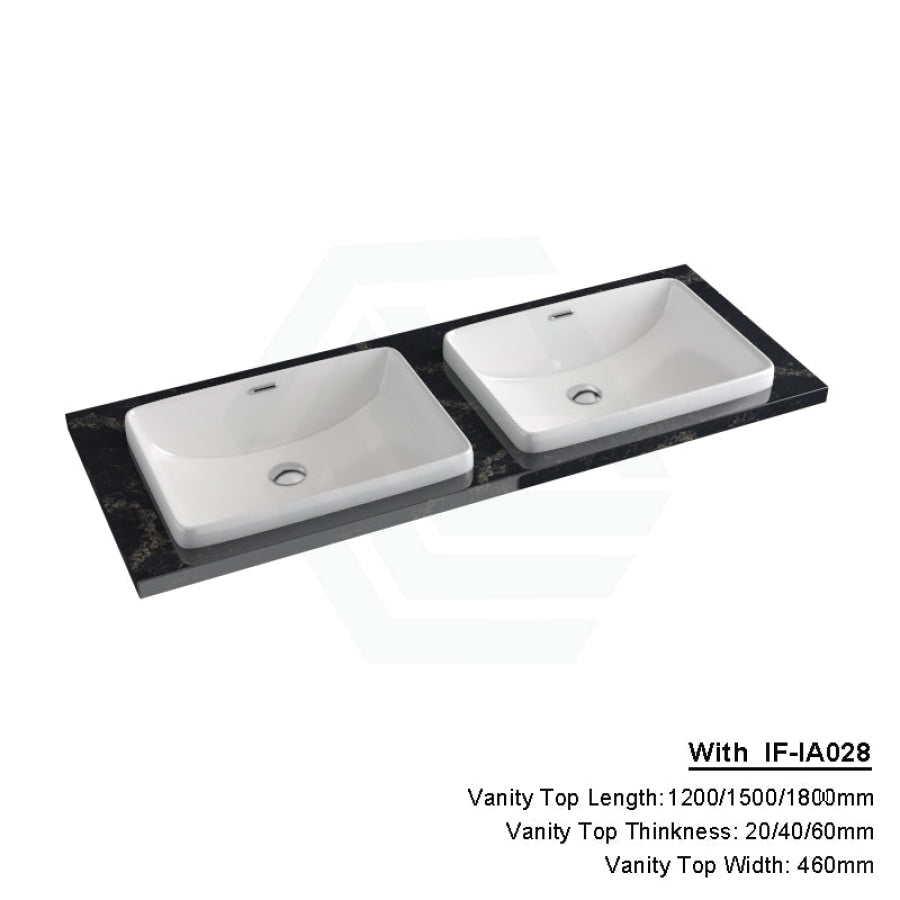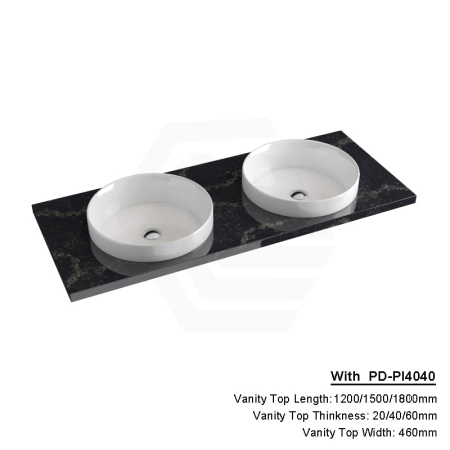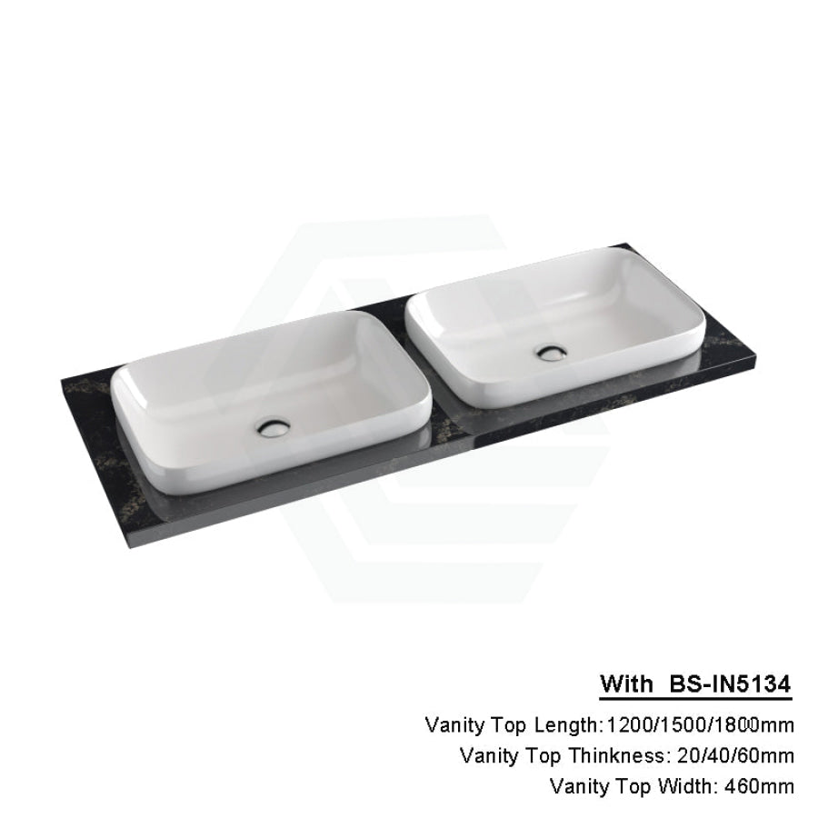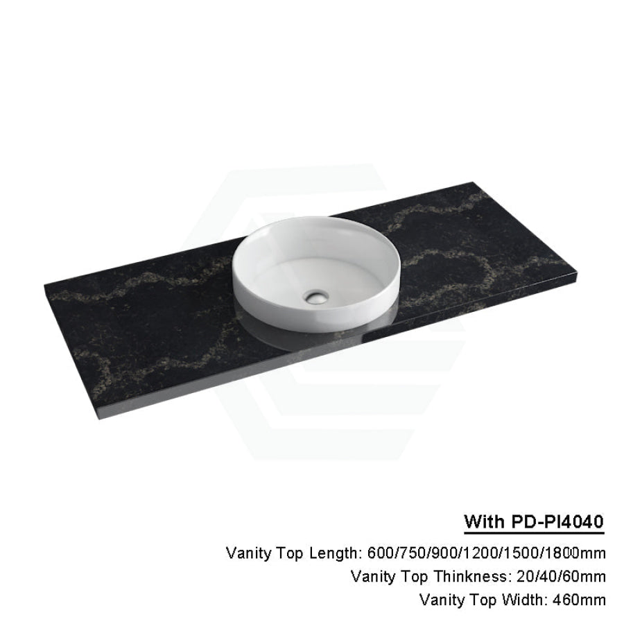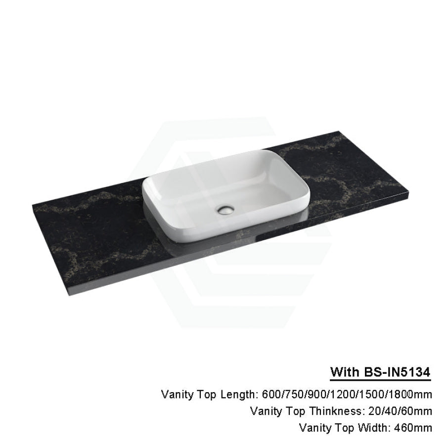 20/40/60mm Gloss Black Swan Stone Top Calacatta Quartz with Inset Basin 600-1800mm