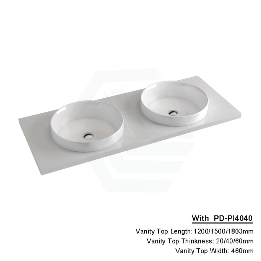 20/40/60mm Gloss White Canvas Stone Top Quartz with Inset Basin