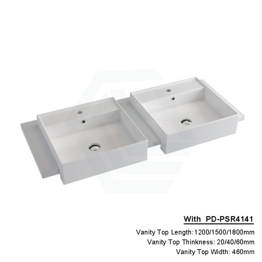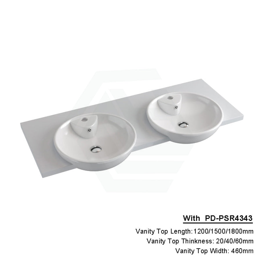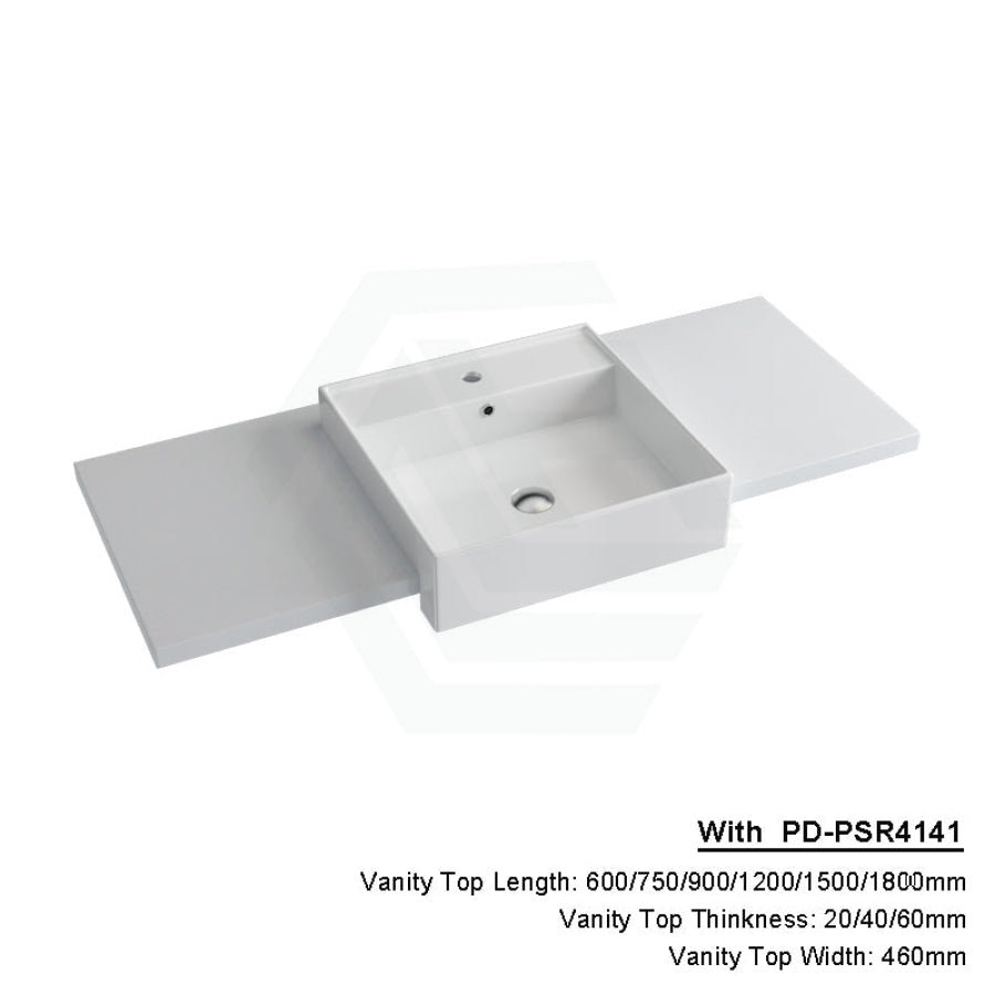20/40/60mm Gloss Silk White Stone Top Quartz with Semi-Recessed Basin